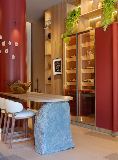 Com quase duas décadas de experiência profissional, a arquiteta Joria Guerreiro destaca-se pelo detalhismo que imprime em seus trabalhos – especialista em gerenciamento de projetos e gestão de negócios, ela aplica essa visão estratégica ao Café IJP, espaço projetado especialmente para a Mostra Manaus. Inspirado na beleza cotidiana do ato de cozinhar e receber, Joria utiliza contrastes marcantes entre o clássico e o contemporâneo, manifestados pelo uso do concreto e da delicada marcenaria clara. O mobiliário Artefacto, em especial a caixa-bar Pietra, contribui diretamente para materializar essa visão, adicionado sofisticação e funcionalidade ao ambiente. A iluminação inteligente e a composição cuidadosa dos elementos criam um espaço acolhedor, refletindo a filosofia arquitetural-emocional de Joria.