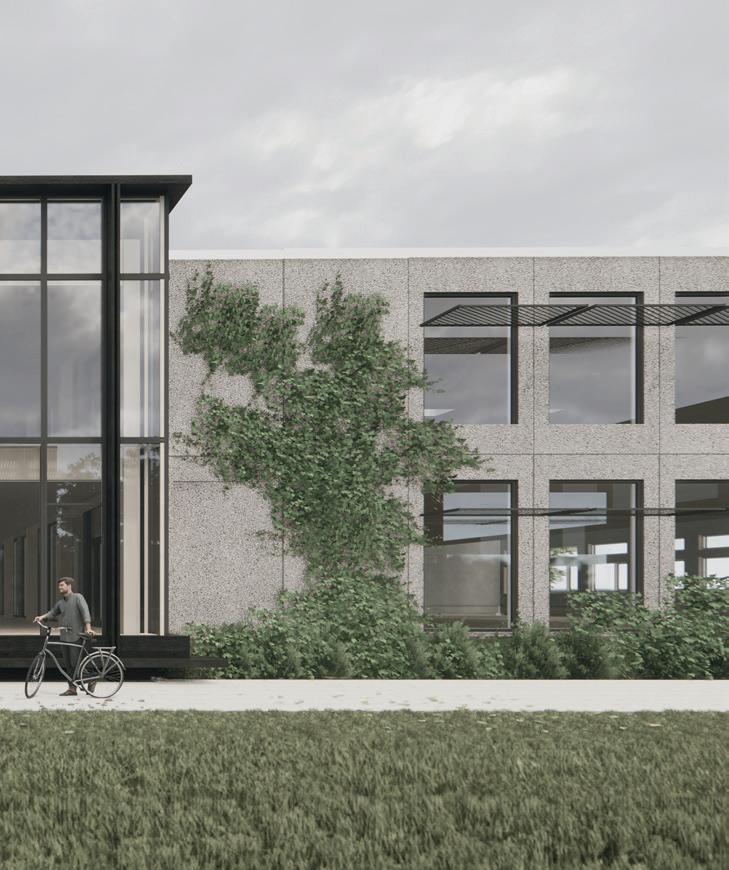 Inspirationen fra det industrielle og maritime kommer også til udtryk ved, at man har valgt at synliggøre alle de elementer, der normalt er pakket ind og gemt væk. Installationerne er frit fremme, og betonsøjlerne i rå beton stjæler spotlightet både udvendigt og indvendigt i bygningen.