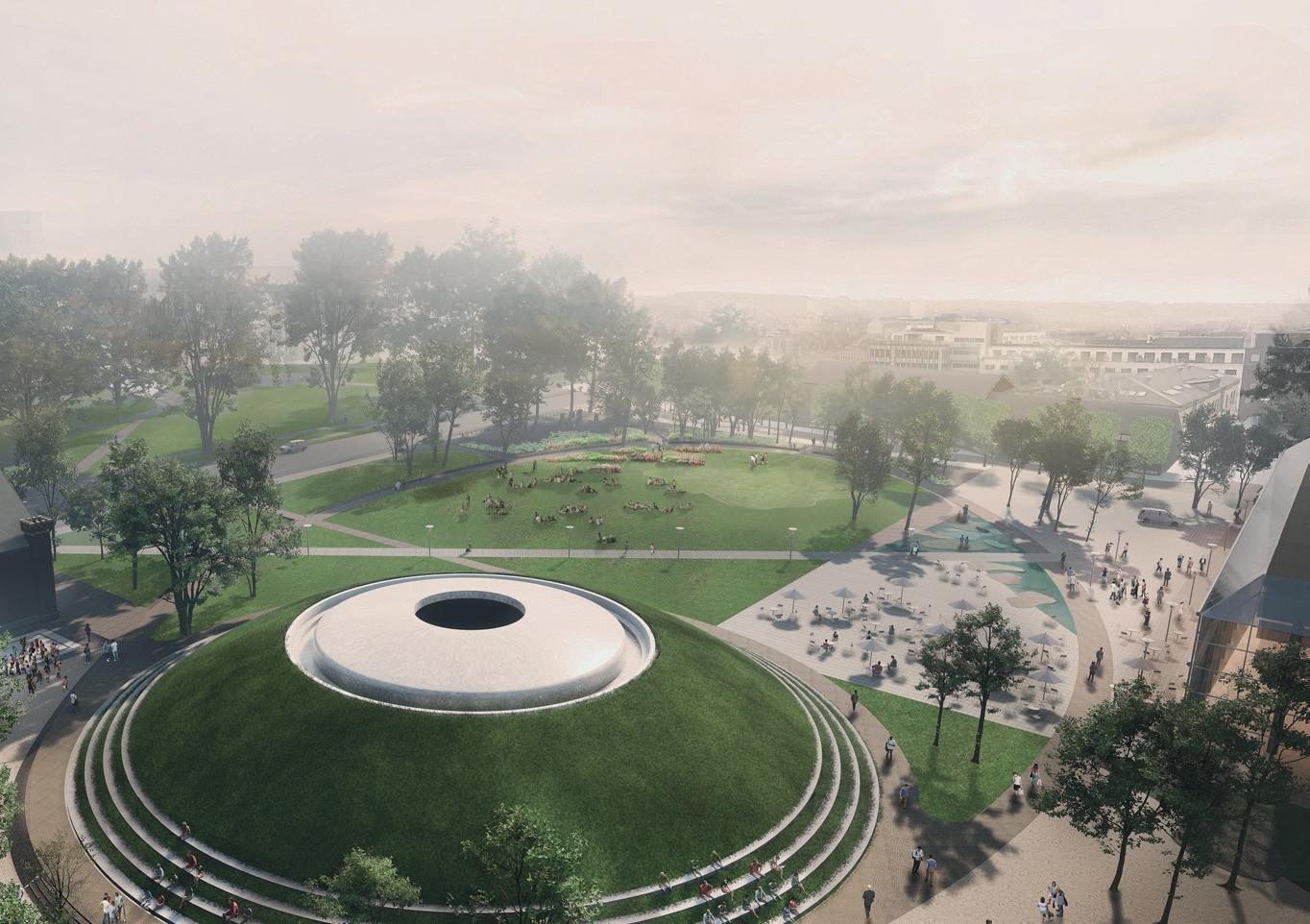 Kunstinstallationen spiller en central rolle i rådgiverteamets vinderforslag, hvor en stor ellipseformet park udspringer fra domens grønne kuppel. Dette hovedgreb kaldes Ringen og vil fungere som en samlende enhed, der forener kulturelle pejlemærker ved at vende sig mod ARoS, Musikhuset Aarhus, Danseteatret Bora Bora, Officersbygningen med Aarhus Musikskole samt Ridehuset Aarhus. En park, der vil være som skabt til både store og små koncerter og arrangementer –herunder Aarhus Festuge.