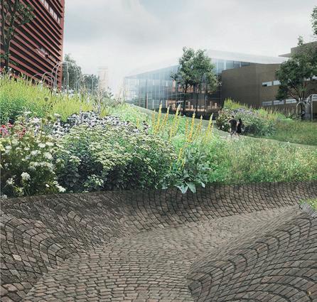 Når forvandlingen af Musikhusparken i Aarhus står færdig, venter der et attraktivt grønt åndehul, der skaber sammenhæng mellem kulturinstitutioner og styrker byens trafikforbindelser.