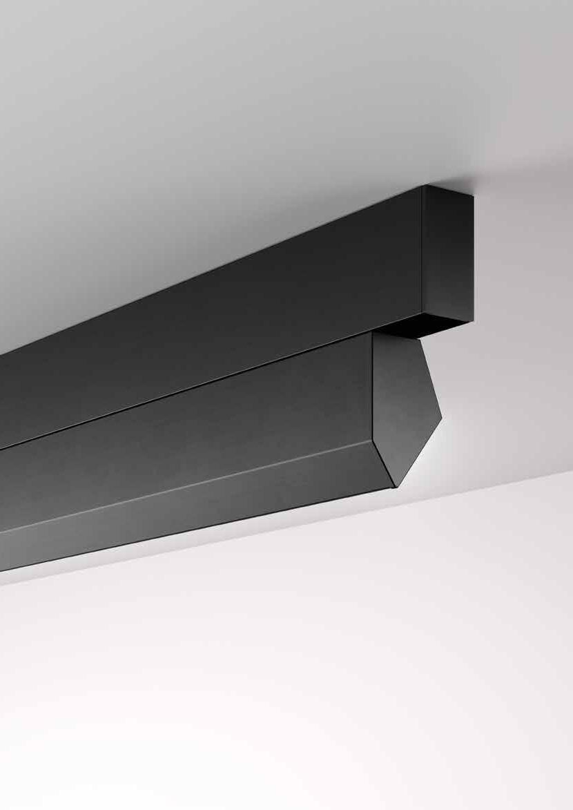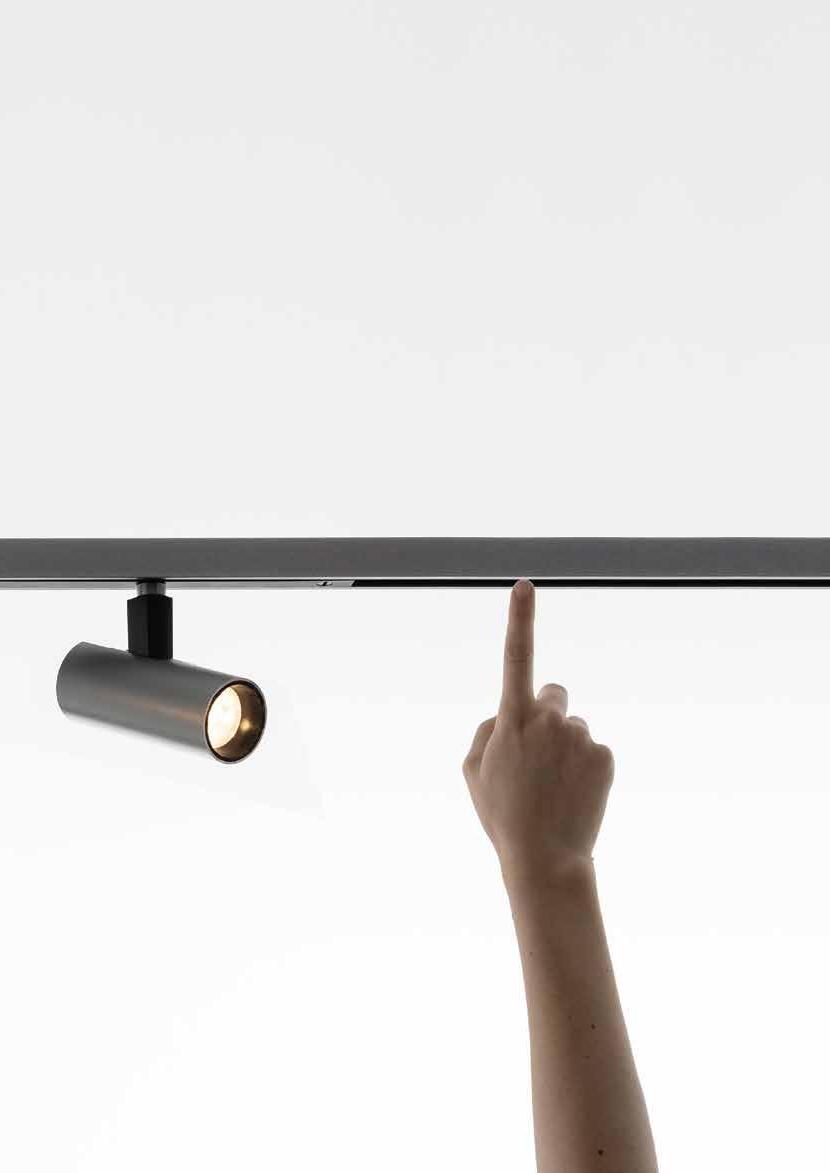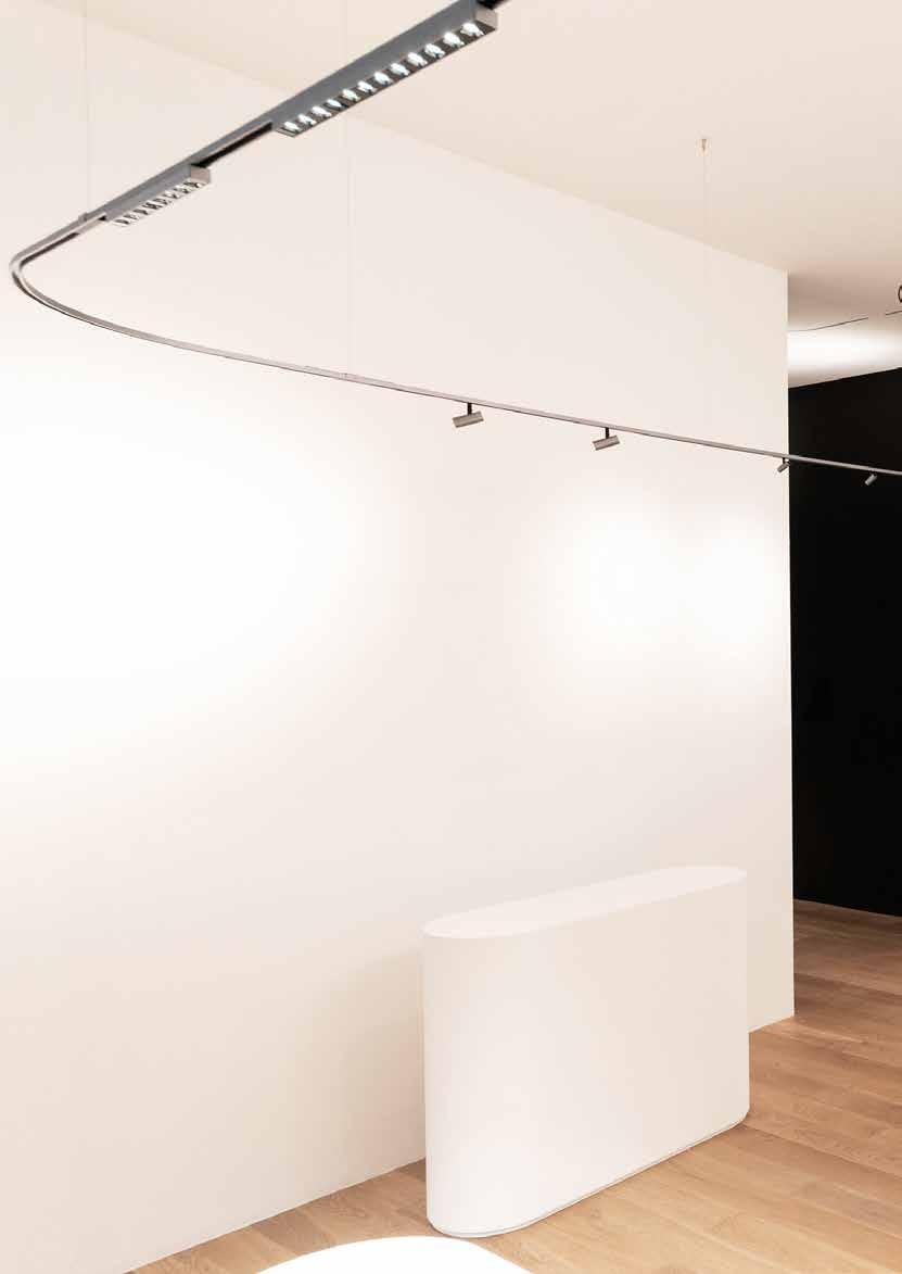 It is a combination of different structural and lighting solutions that adapt to last-minute space thanks to its minimal section. It is a composition based on a very small track, with a patented section dictated by the standard thickness of plasterboard, meaning it can be inserted into the available space in any situation.