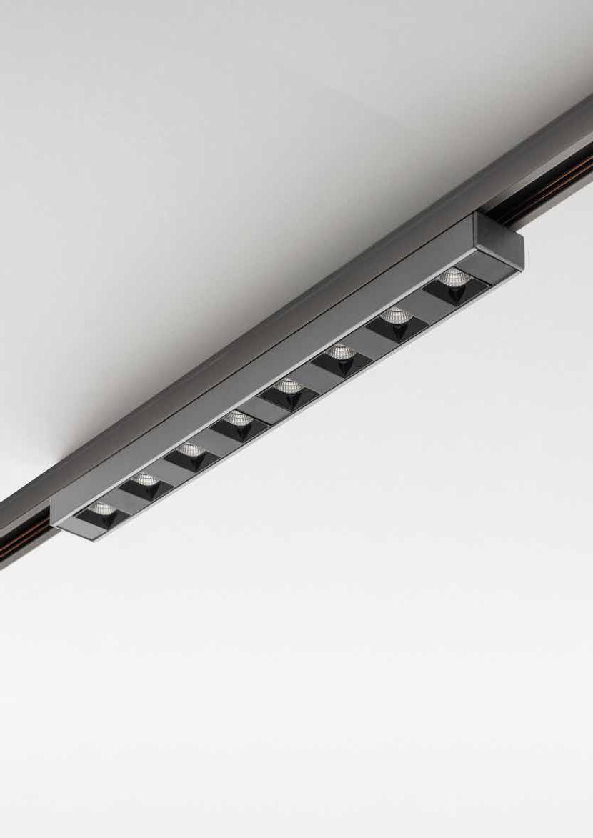 Indeed, the same track can accommodate a linear module for diffused light, plus sharping, spot and suspension modules.