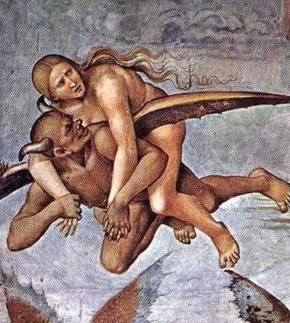nato da bestie, che mangia peccatori, che li elimina come feci, ogni tanto. Poi, con l’Umanesimo e il Rinascimento prende forme umane, come avviene negli esempi di Luca Signorelli o del Michelangelo della Sistina. Al Maligno si addice la seduzione, che può essere della carne, ma anche dell’intelletto. Pasquini fa in tempo a inserire, a ragione, due capitoli sulla cultura coeva nordica, dove, in un’ottica pessimista, che si avvicina già inconsapevolmente