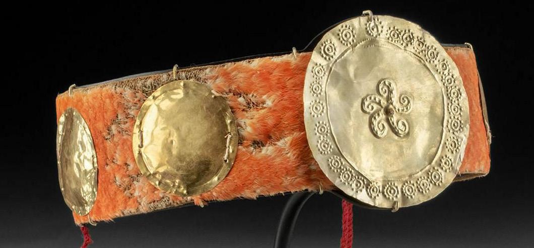 LOT 166a Superb Olmec Greenstone Figural Were-Jaguar Pendant Ca. 900 to 500 BCE. may represent the intense process of were-jaguar transformation! 2”H. Est. $9,000-$12,000 LOT 183a Superb Nazca Feather Crown w/ Gold & Electrum Discs ca. 200 BCE to 400 CE. a stunning crown fit for royalty or an elite person of Nazca society. 1.75” H (29.8 cm) on included custom stand. Est. 13,000-$19,500 VIEW THE ENTIRE CATALOG | Prefer to bid by phone? Call 720.890.7700