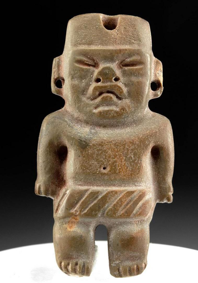 Caspian Sea region, late 2nd to early 1st millennium BCE. carved greenstone steatopygous figure. Similar in style to figures from this region of southwestern Iran, but more commonly found in terracotta. Size: 4.25” W x 12.5” H. Est. $14,000-$21,000