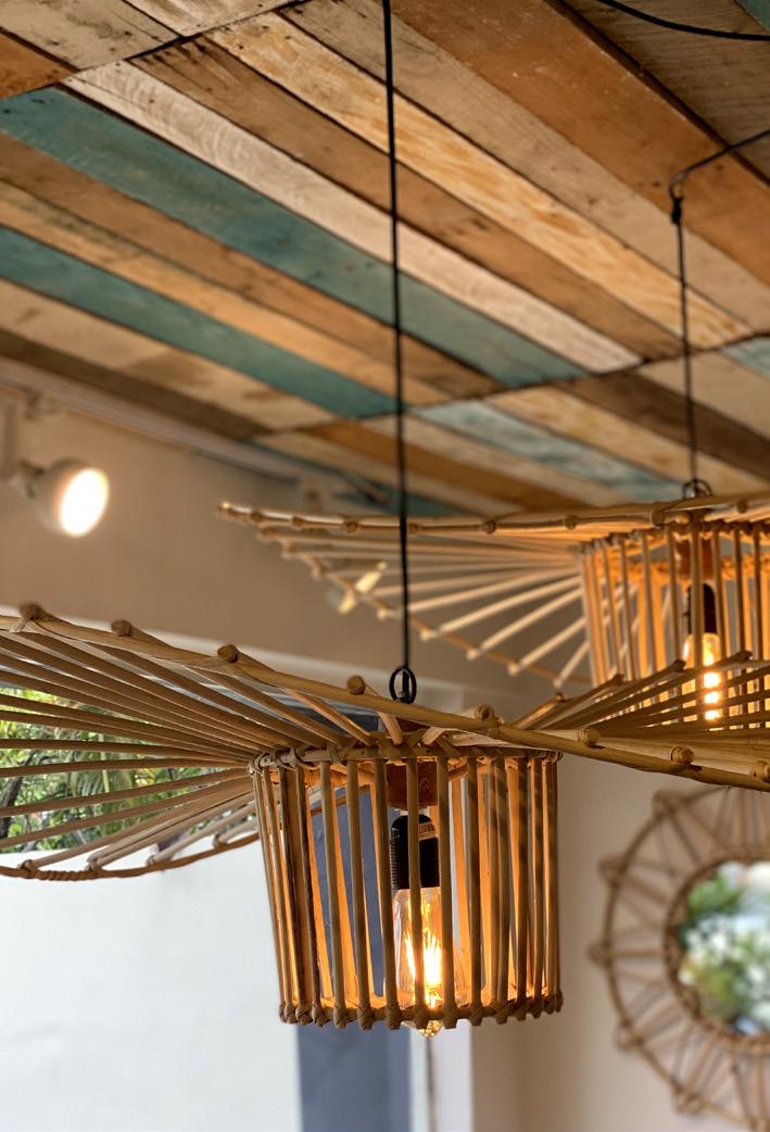 Lámpara Bohuco Circular.Lámparas Bar Esfera en mimbre.