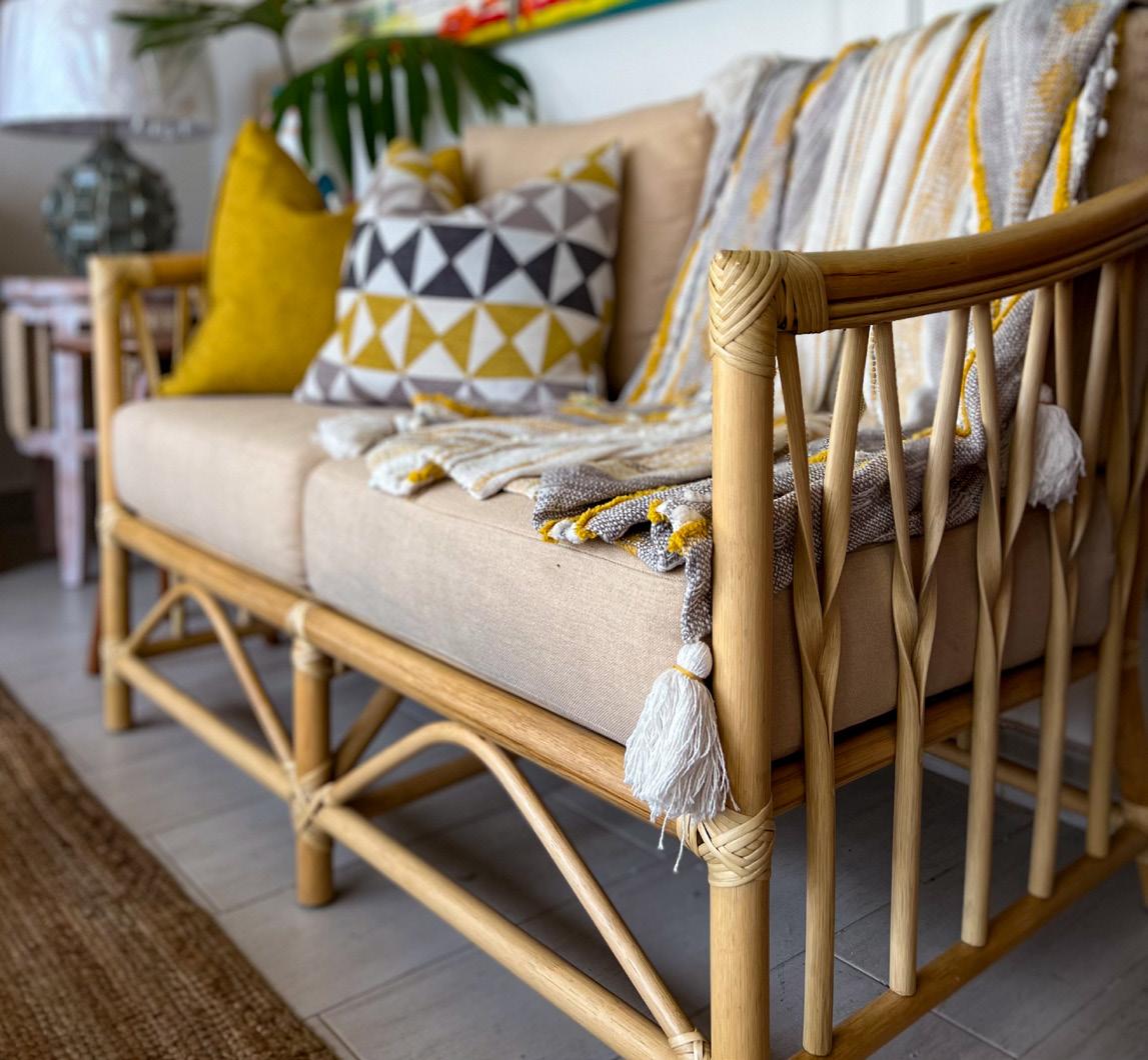 ARTE NATIVO | 9 Mueble modelo “África” En madera y pajilla. Sofá modelo “Ferna” Tejido en mimbre natural.