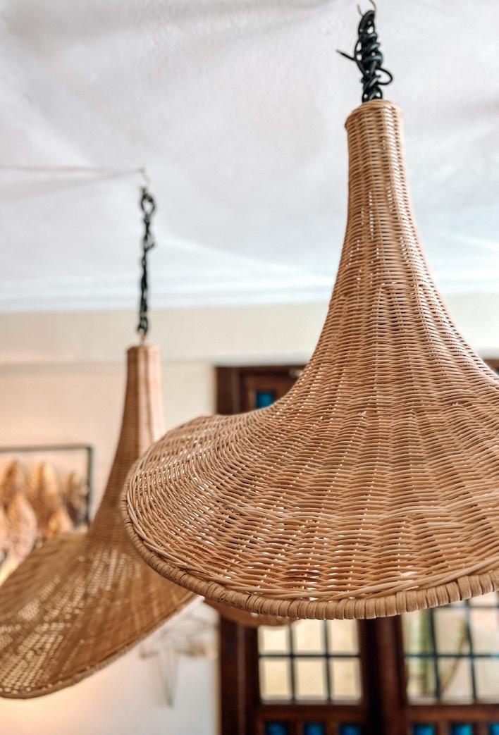 ARTE NATIVO | 35 Lámpara Fontanne con tres círculos blancos. Lámpara de soga natrural en forma de S. Lámpara en cerámica blanca con líneas. Lámpara Pelia azul turquesa y gris. Lámpara Maggie. Lámpara base madera y metal con pantalla tejida.