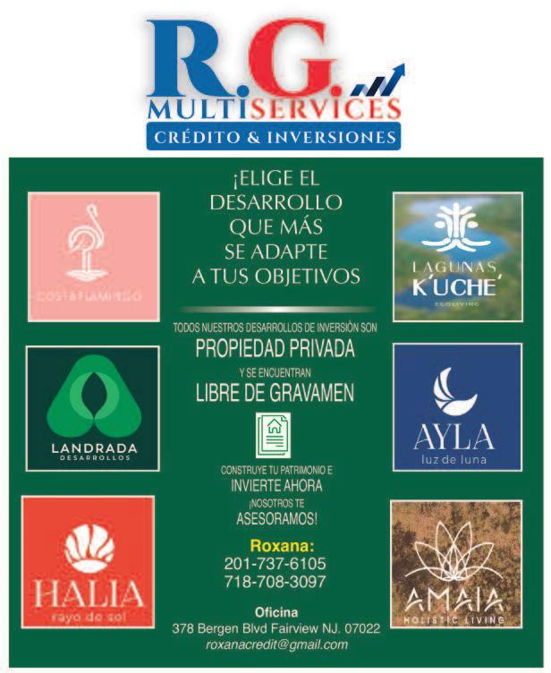 PUBLICACIÓN GRATUITA BILINGÜE NEW JERSEY · NEW YORK · FLORIDA · PENNSYLVANIA · WASHINGTON DC HUDSON · BERGEN · ESSEX · PASSAIC · UNION · MORRIS · MIDDLESEX · MERCER AÑO XII-DESDE JUNIO 2009 OCTUBRE, 2022 - EDICIÓN 133 Experience since 1982 (201) 271-9200 (201) 456-8292 www.lauraviajes.com AIRLINES TICKETS, CRUISES TOURS, EXCURSIONS, INCOME TAX ¡A DONDE TE IMAGINES, TE LLEVAMOS! ¡PAQUETES DE VACACIONES TODO INCLUÍDO CON FACILIDADES DE PAGO! Cancún, Riviera Maya, Punta Cana, Jamaica y todo el Caribe MARTES 8 DE NOVIEMBRE 2022 Elecciones definitorias para los próximos dos años del Presidente Biden SENADOR BOB MENÉNDEZ CELEBRÓ MES DE L A HERENCIA HISPANA Invitada Especial Blanca Rosa Vílchez de Univision, reconocimiento al Congresista Albio Sires y Senadora Estatal Teresa Ruiz -Pág 6-Pág.10ROSEMARY PINO PARA CONCEJAL DE CLIFTON VOTE CASILLA # 16 Mar tes 8 Noviembre 2022 -Pág.12-