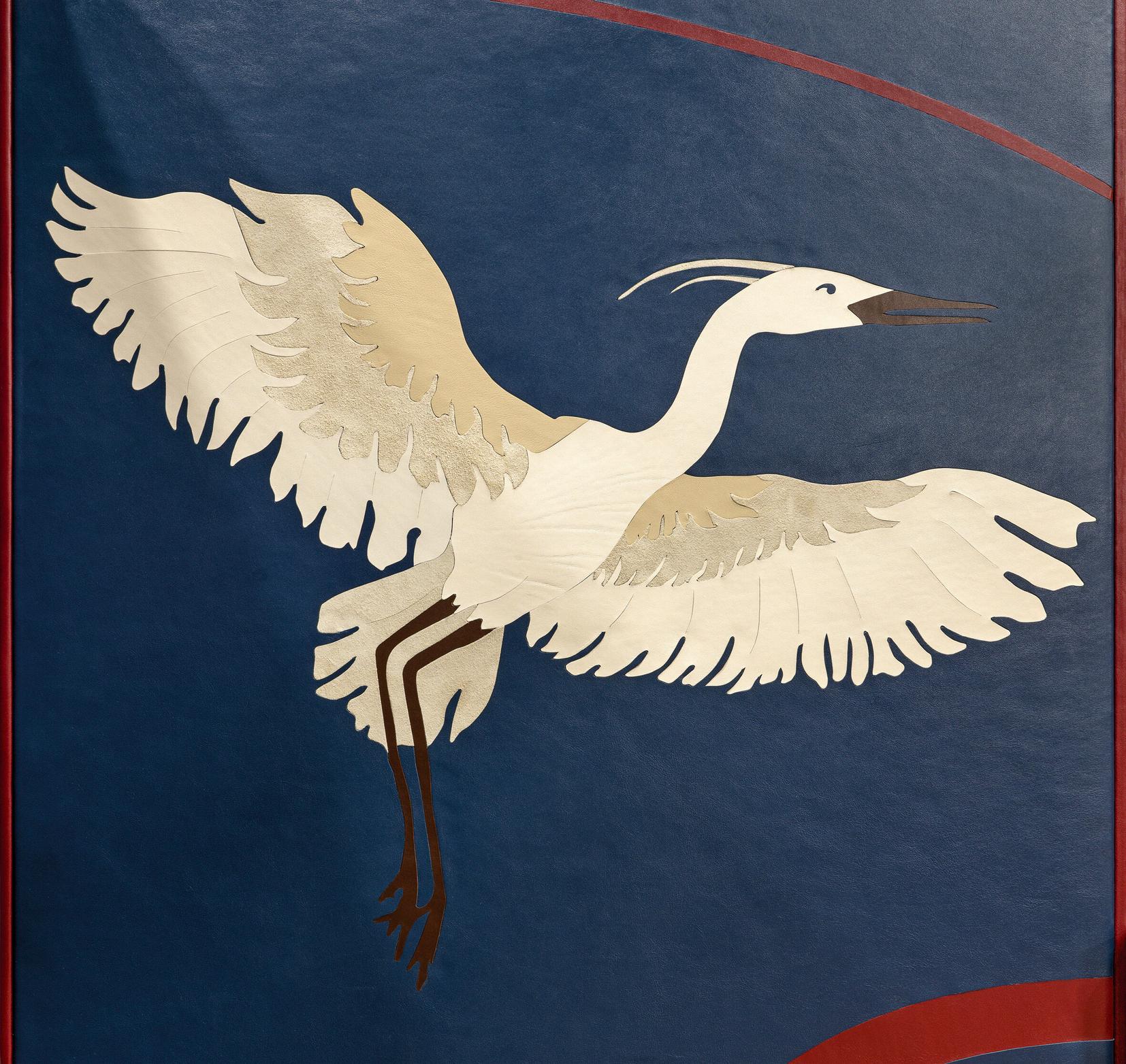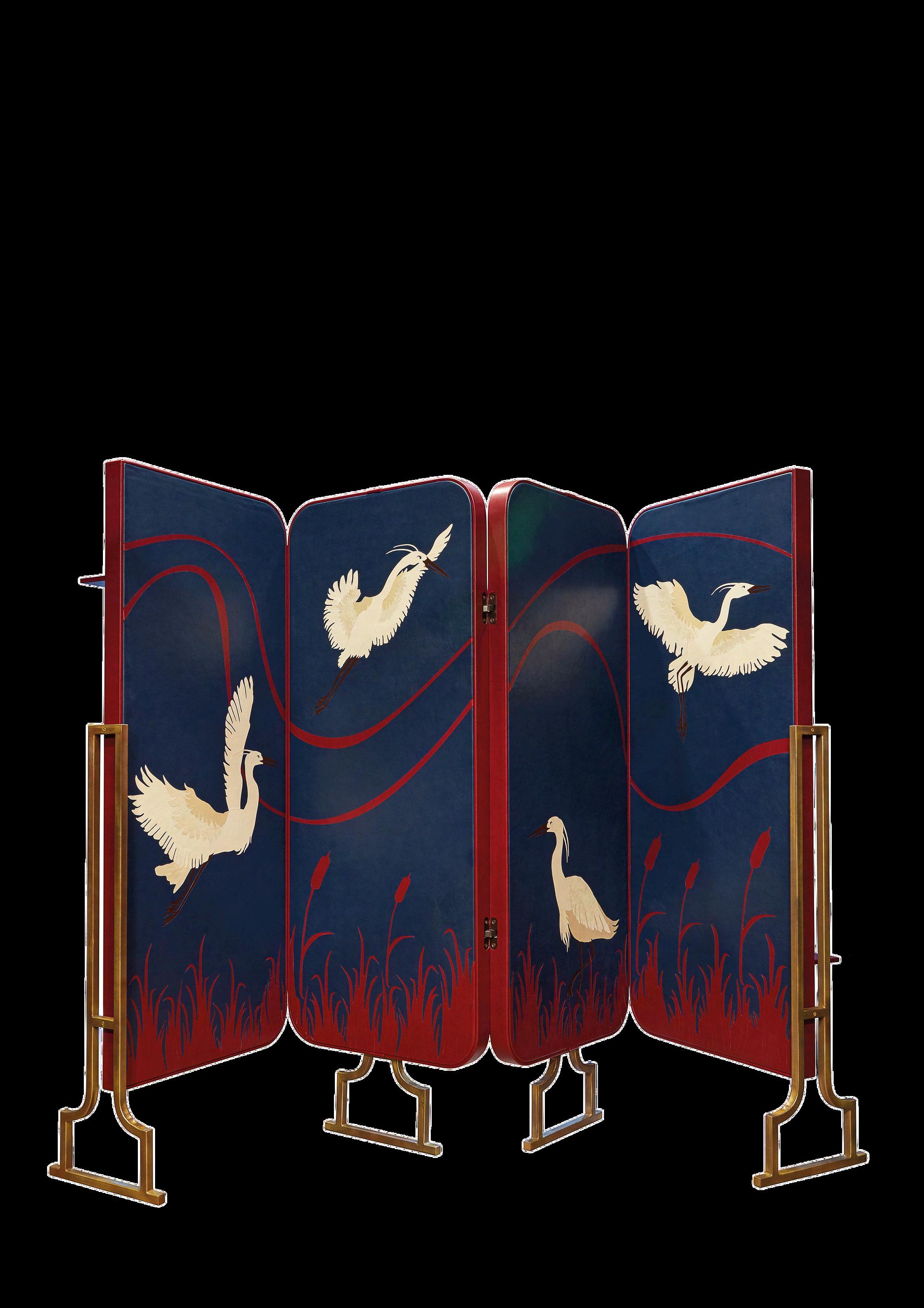 This screen becomes the canvas for a precious decoration inspired by nature: a flight of herons, living symbols of the Ticino Oasis, is reproduced throughinlaysmadewithdifferenttypesofleather. Theherons,elegantandmajestic,areatributetoour territory and symbolize the delicate relationship betweencraftsmanshipandnature,betweenhuman abilitytomanipulatematerialsandthespontaneous beautyofthenaturalworld.