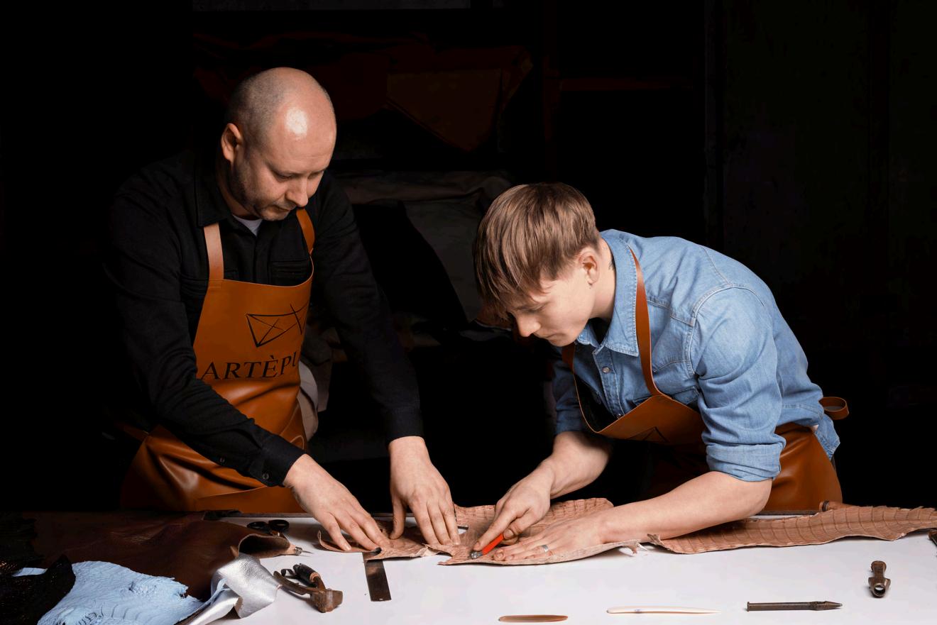 Inthisvirtuouschain,Artèpurapositionsitselfasa transformer and fundamental final link. So-called "eco-leathers" and synthetic materials, often presented as ecological alternatives, hide a very different reality. These are petroleum-derived products, whose production process has a high environmental impact. Real leather requires processingthatcannotbecompletelyindustrialized. The selection, cutting, and processing of leather require the expert eye and skilled hand of the artisan.Thisexpertisetranslatesintoextraordinary qualityproductsthatimproveovertime.