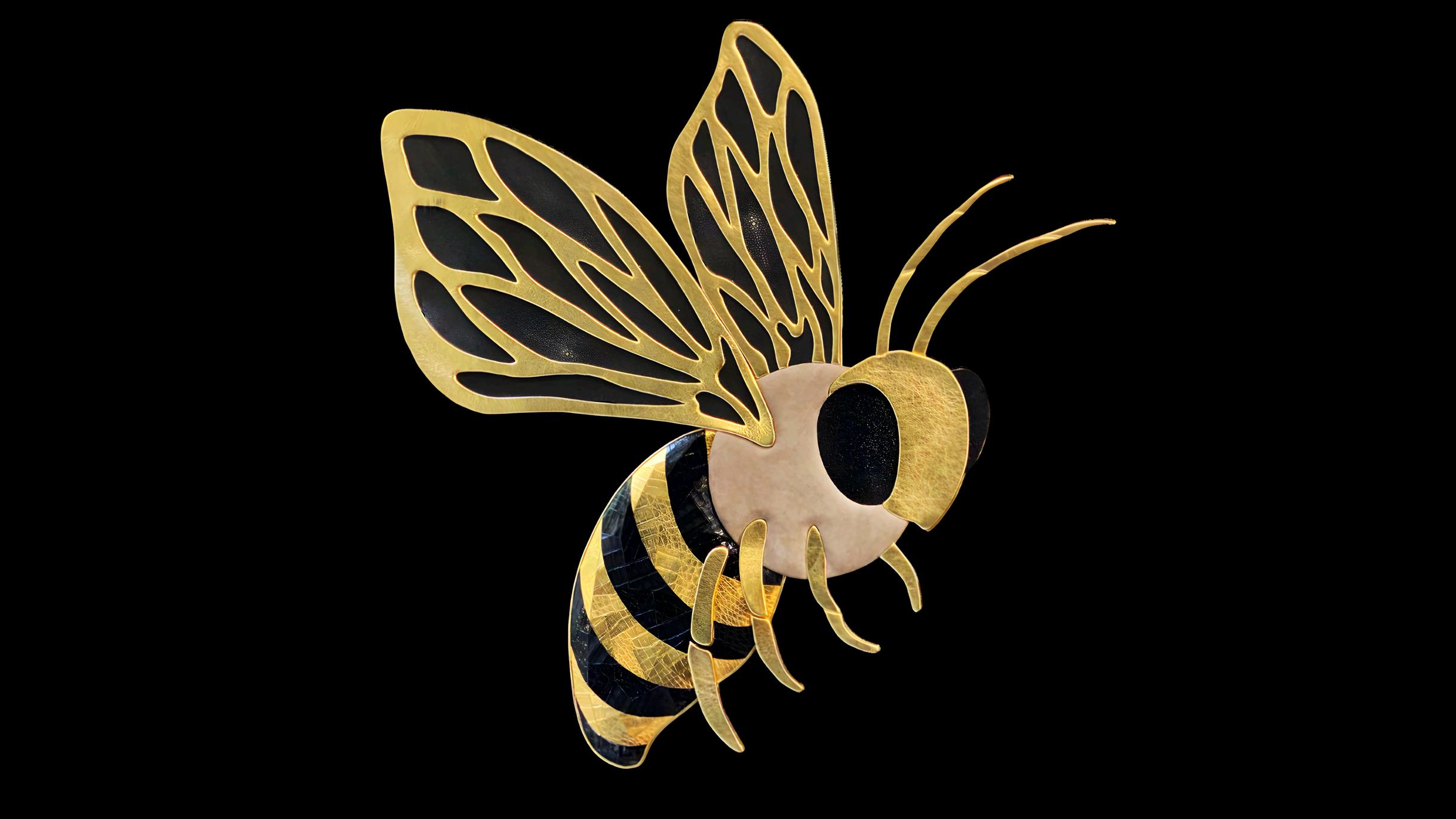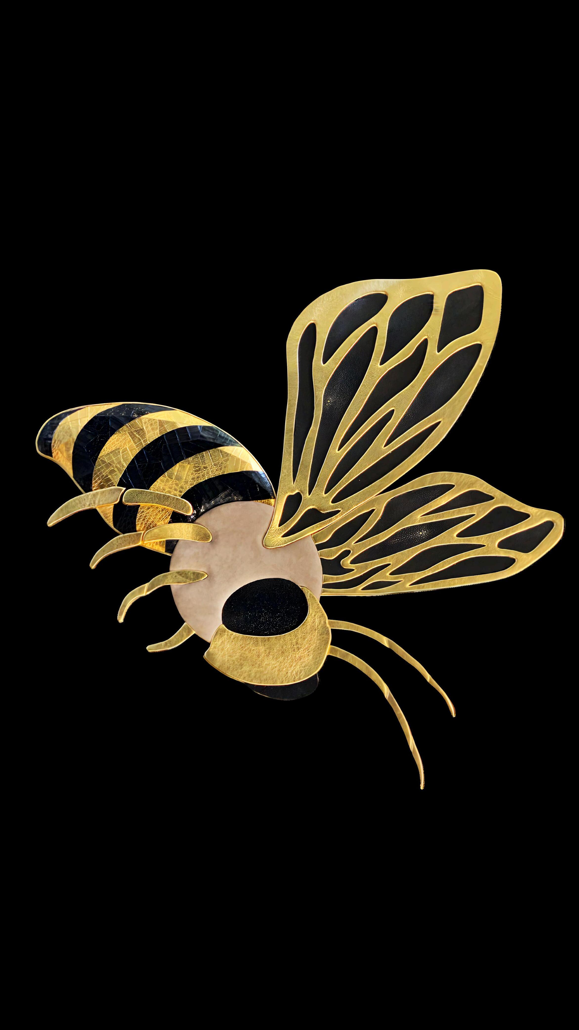 Thebee'scontours,delineatedingold-coloredlaminatedbovineleather,are not simply defining elements but become an integral part of the composition,creatingluminouslinesthatguidetheeyethroughtheinsect's forms. The work as a whole represents an exceptional example of how differentartisanaltraditionscanmergeintoacontemporarycreation.