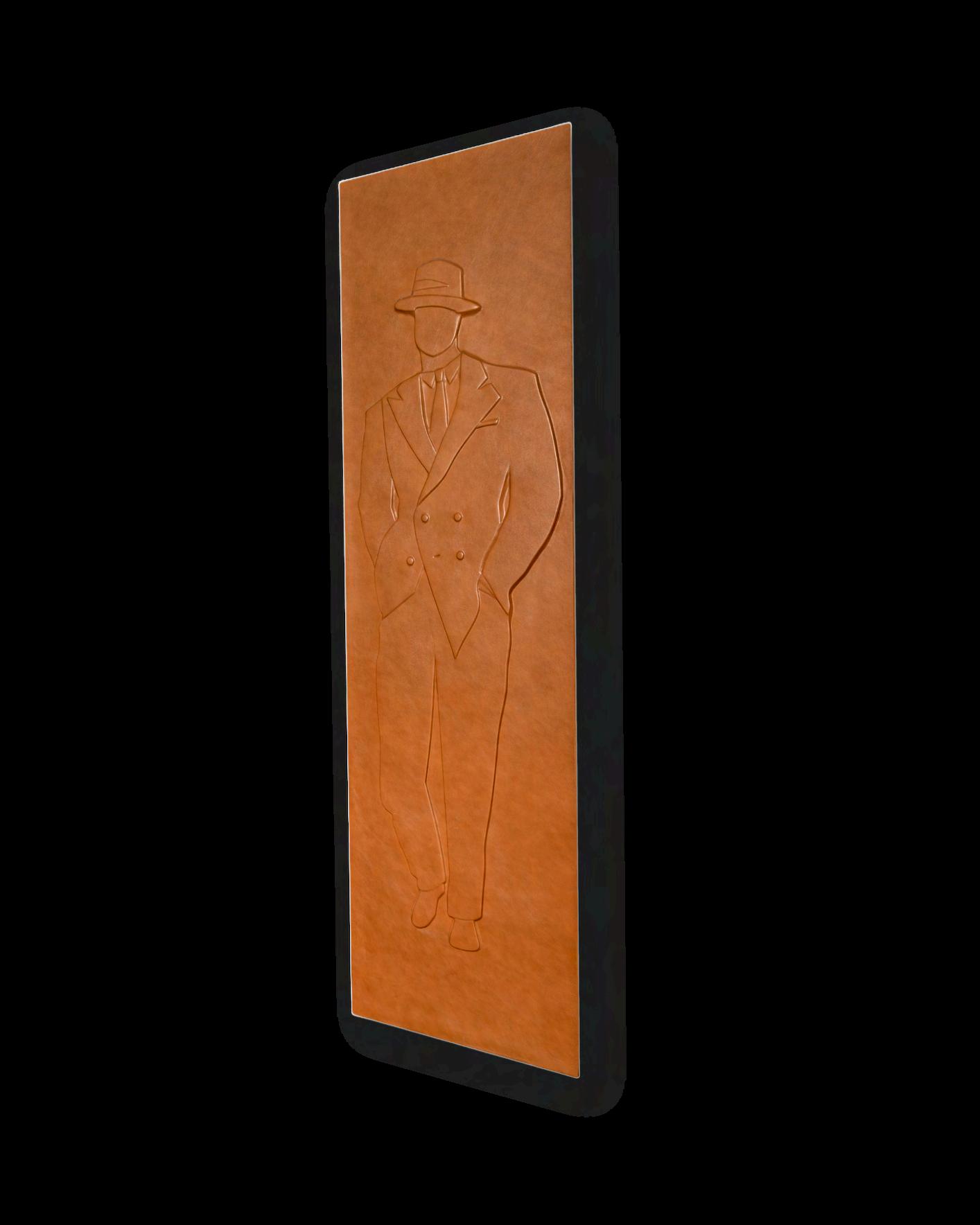 Thisframeddecorativepanelrepresentsanexcellentexpressionofartisanal mastery, created through an extremely complex and refined processing technique.Theworkoriginatesfromtheuseofasinglelargepieceofbovine leather,carefullyselectedforitsqualityandstructuralintegrity.