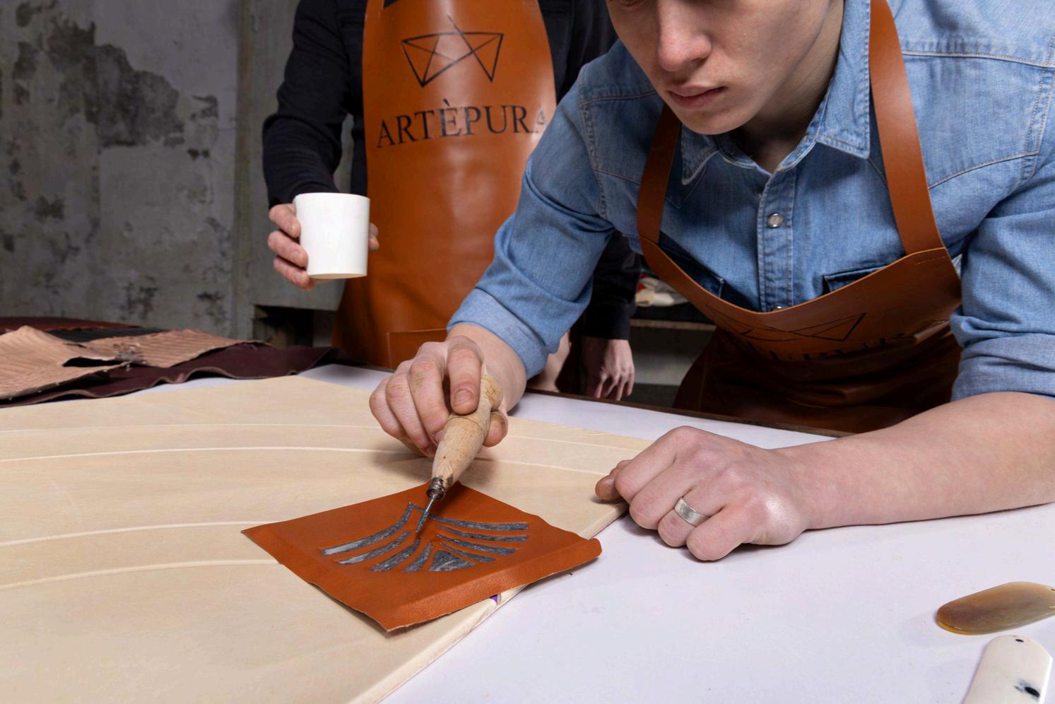 Thus Artèpura was born, a workshop of excellence in leather craftsmanship dedicated to creating wall decor, art design complements and decoration of surfaces Made in Italy. Our creations are a bridge between past and future, authentic works that transform surfaces into living sculptures, elevating spaces and offering new interpretations.