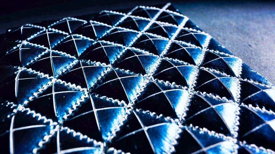 The geometric pattern is composed of elongated hexagons, modeled to create a three-dimensional effect that plays with light and surfaces. The variation between nappa textures offers a rich and multifacetedsensoryexperience.