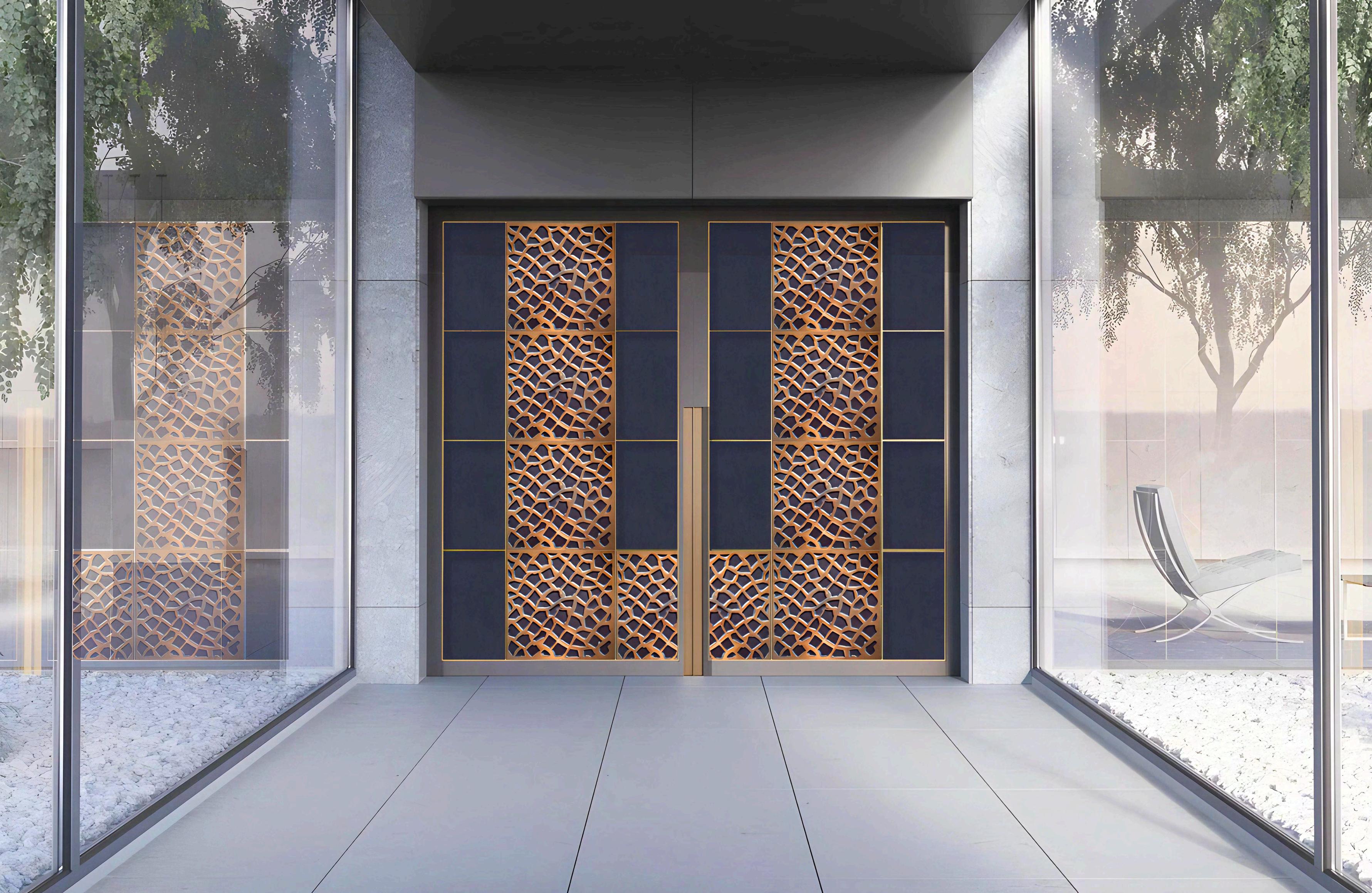 This door is not a simple architectural element, but a visual narrative that celebratesthebeautyofmovement,light,andmatter.