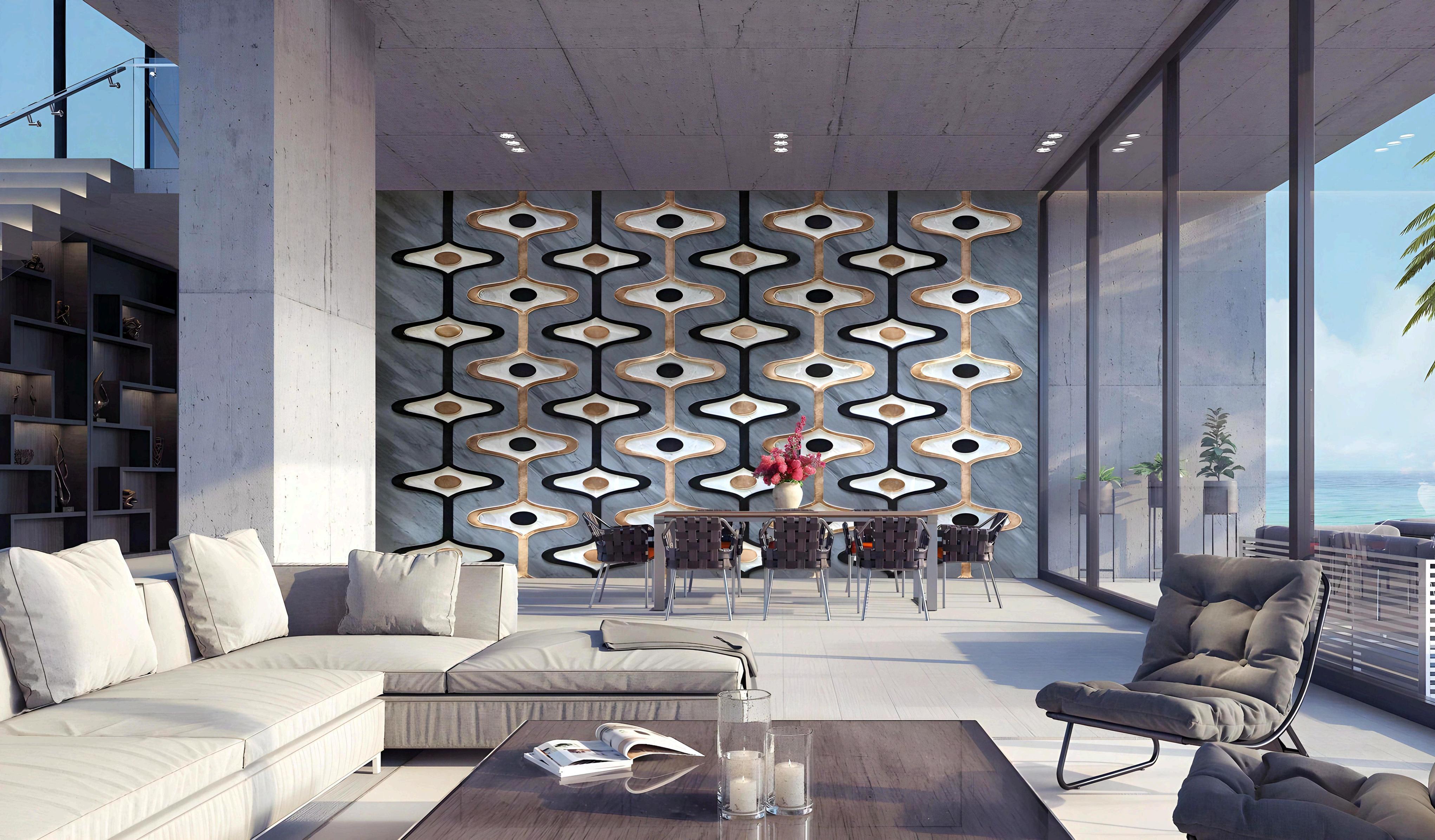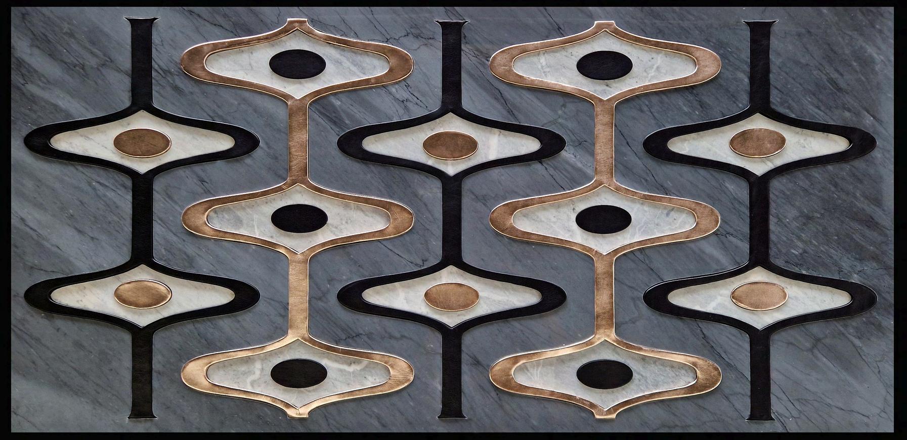 Thebichromyofthecompositionisnotcasualbutstudiedtocreateavisual rhythmthattransformsthesurfaceintoadanceofformsandtextures.Each module is worked individually, with particular attention to the precision of cuts and quality of finishes, fundamental elements to guarantee the harmonyofthewhole.