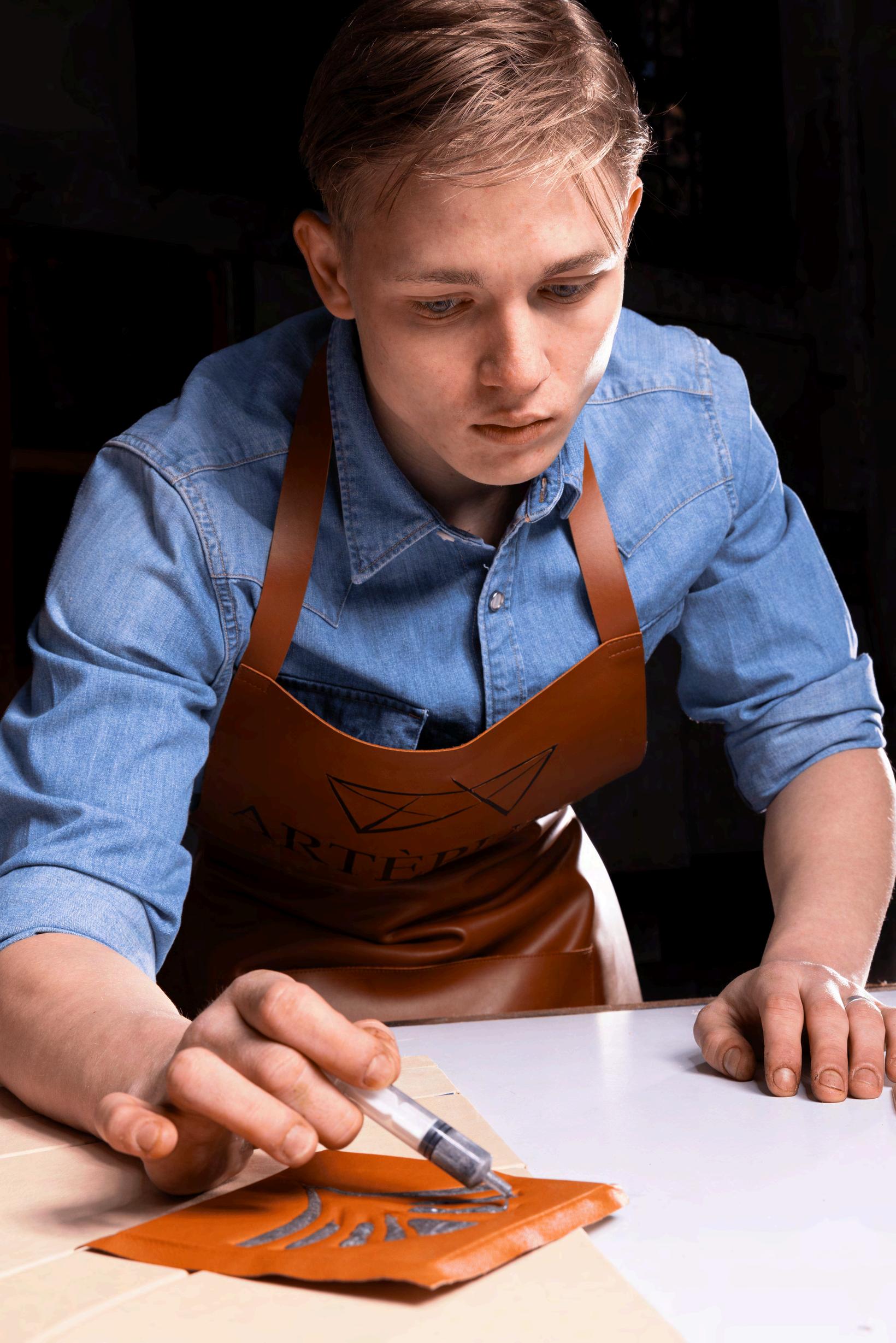The high relief technique represents a form of artistic craftsmanship involving the creation of three-dimensional designs without the use of stitching.WithitsdeepestrootsinItalianart,thistechniqueisreinterpreted byArtèpuraonleather,givinglifetosculpturalcompositionsofgreatvisual andtactileimpact.