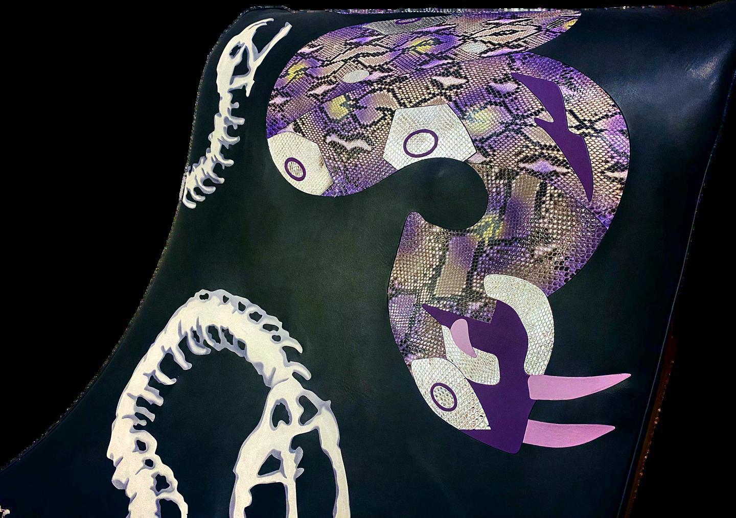 Thepanelrepresentsaboldfusionbetweennaturalstoneandfineleather, where the ancient tradition of marble working meets innovation in leather crafting. The work develops on a background of refined Imperial Bardiglio marble, chosen not only for its intrinsic beauty but also for its particular veiningthatcreatesadynamicfoundationforthecomposition.