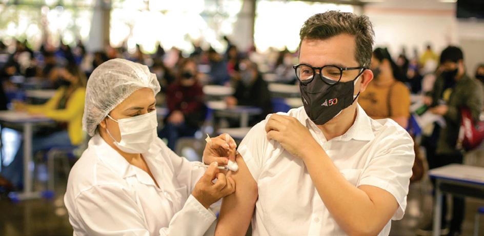 O vice-reitor entrou na fila para receber a primeira dose e incentivar os servidores a fazerem o mesmo