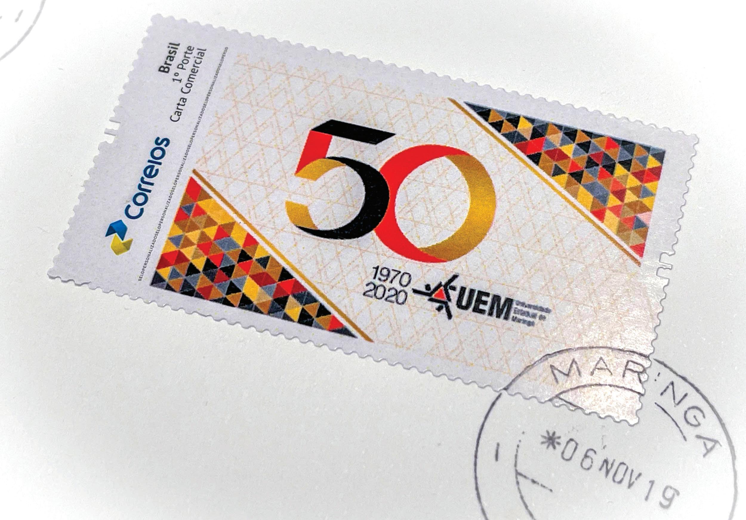Selo - A programação do cinquentenário da UEM começou em novembro de 2019, com o lançamento do selo especial dos 50 anos, elaborado pelos Correios, com logotipo do jubileu de ouro criado dentro da própria universidade. O selo personalizado entrou em circulação no fim de 2019 e hoje permanece no acervo dos Correios no Estado do Paraná.