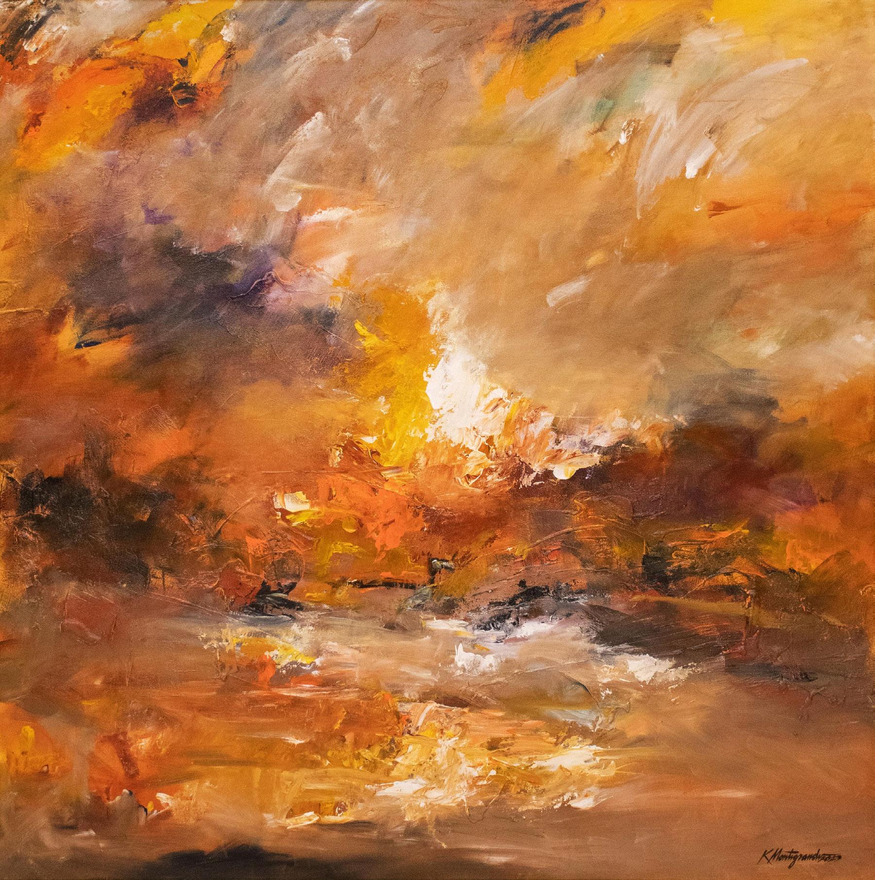 In “Circle of Life”, each abstract work is inspired by quotes from leaders and other respected personages whose wisdom, passion, and overall success tell us that they are worth emulating. They have made the most of their lives as their achievements prove. It is in this train of thought, for example, that Montegrande created the work “It Goes On” based on Robert Frost’s quote “In three words I can sum up everything I’ve learned about life: it goes on.” Or for that matter, Jack Kerouac’s “Keep calm and carry on,” is translated to a painting that has the same exact title. But not all are as directly corresponding as these, for example Frank Lloyd Wright’s “The Longer I live, the more beautiful life becomes,” is transformed by Montegrande as an artwork entitled “Grateful in Everything.” And Mario Fernandez’s “Rise above the storm and you will find the sunshine” into Montegrande’s “Rise to Shine.” Using inspiring quotes as a trigger for painting has been one of the ways that the artist made some earlier works. And the confidence and maturity show in the bold strokes and impastos that mark the abstract works for this exhibition.