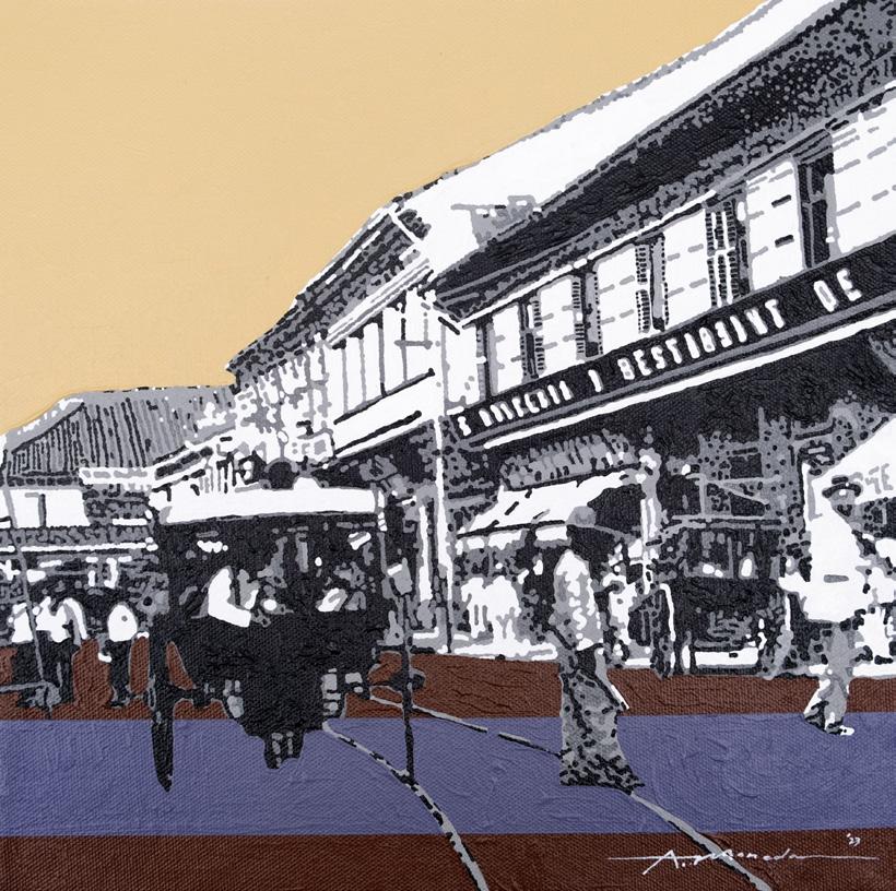Old Manila Scene (Shops) 12 x 12 in Acrylic on Canvas