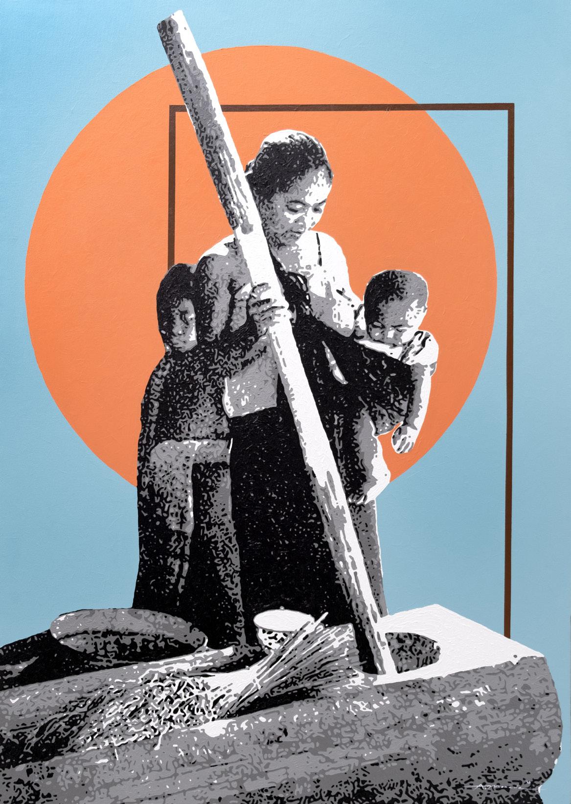 Rice Pounders 24 x 40 in Acrylic on Canvas