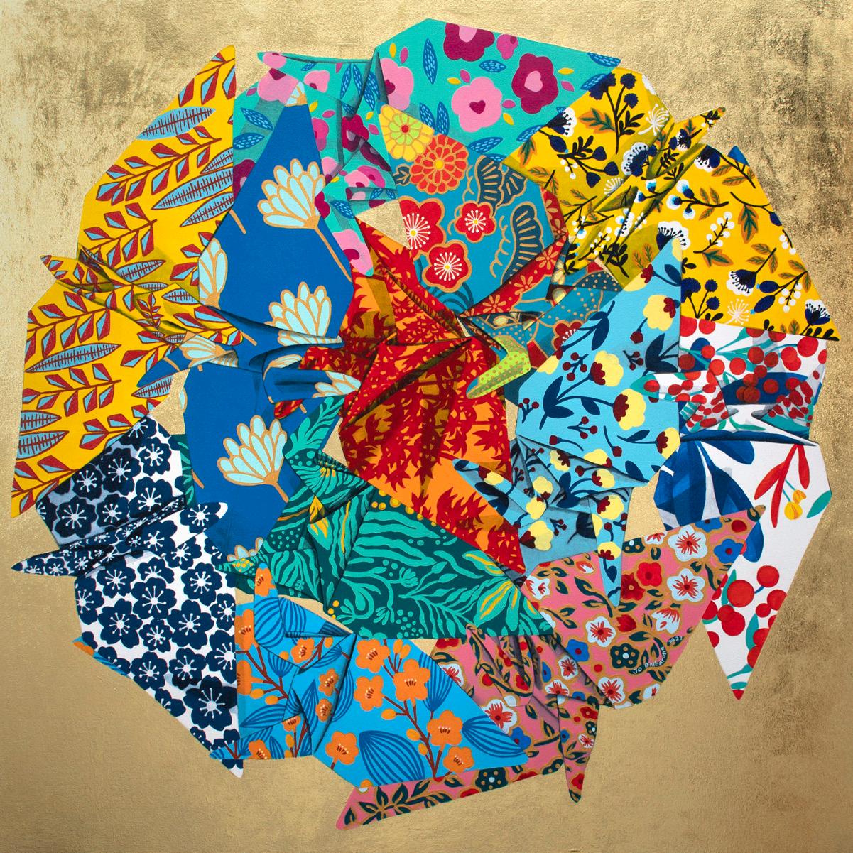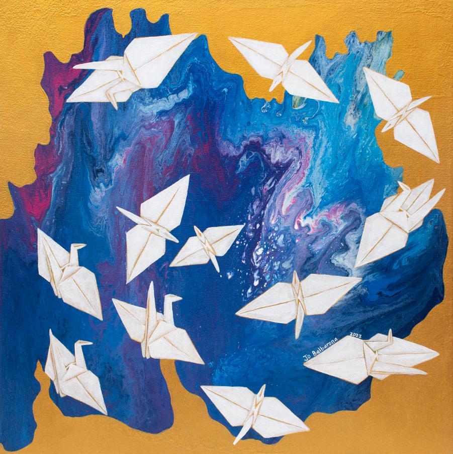 Thousand Cranes Afloat 72 x 95.5 in Acrylic on Canvas