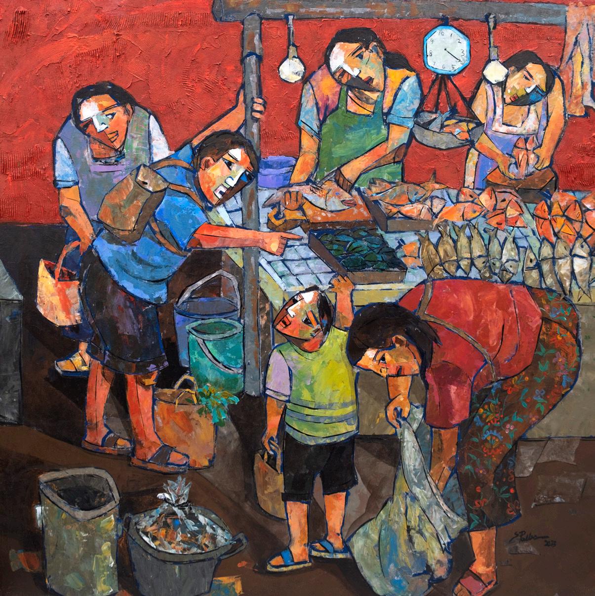 Fish Market (Dawn) 36 x 36 in Acrylic on Canvas