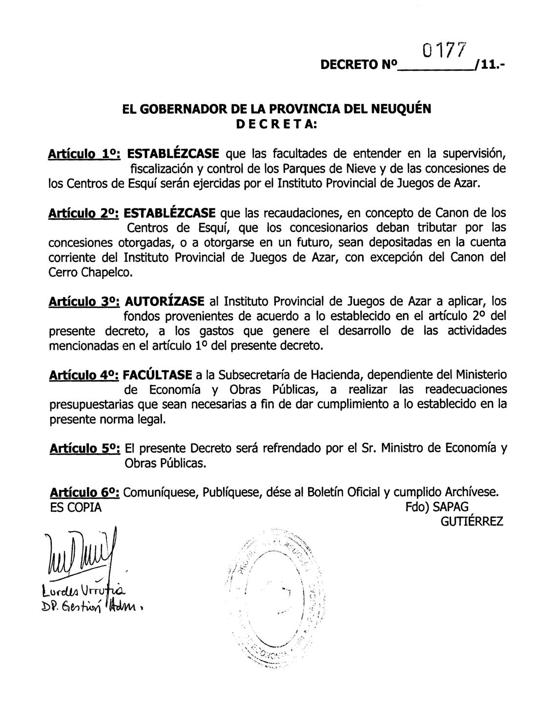 ARTICULO 11.- Marcha fuera de la explotación al publico..............................................................