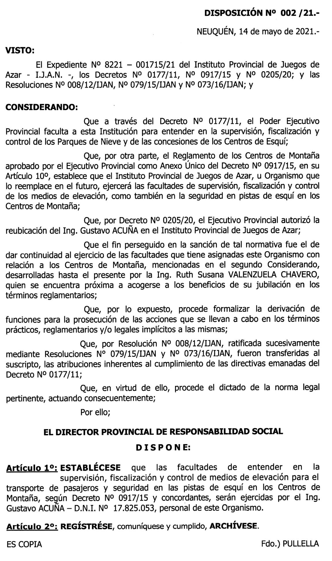 Toda vez que alguno de ellos falle, se configura la situación prevista en el apartado 8.2.- de Reglamento General de Explotación de Medios de Elevación de Centros de Esquí y Parques de Nieve, por lo que se procederá en consecuencia.-