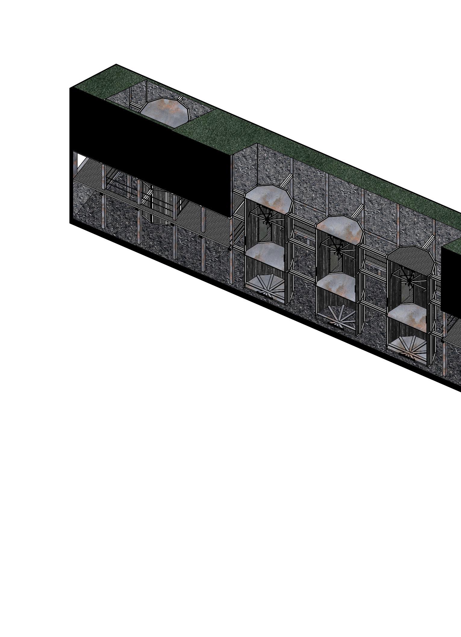 Het programma op de locatie zou een expositie-unit zijn. Vanuit hier wordt geëxposeerd, gewerkt en verbleven. Met als contrasterende uitgangspunten uit het werk van Louis Kahn en Buckminster Fuller.