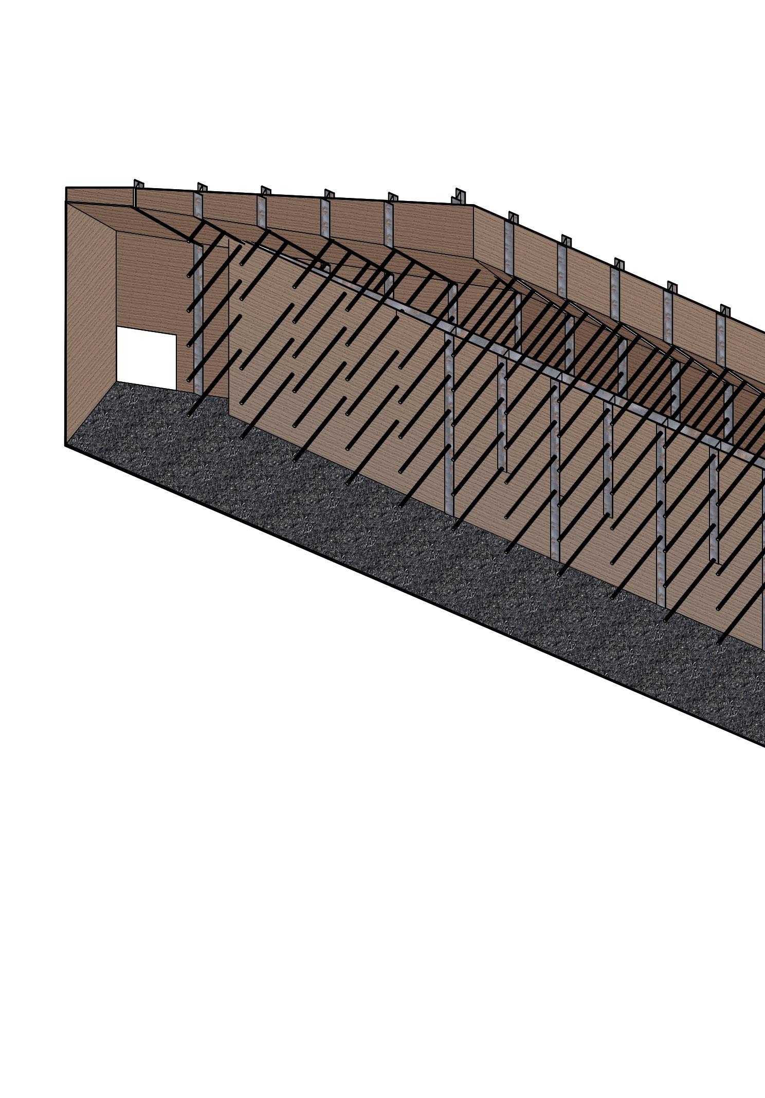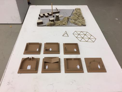 De ruimtes die de bezoeker tegenkomt in het ontwerp zijn visuele interpretaties van foto’s van industriële objecten. Deze interpretaties zijn vertaald met het maken van fysieke modellen, waarbij gefocust is op de ruimte en architectuur met behulp van schuimmodellen. Deze modellen waren de opstap voor grotere exemplaren die zich focusten op het materiaal en de atmosfeer.