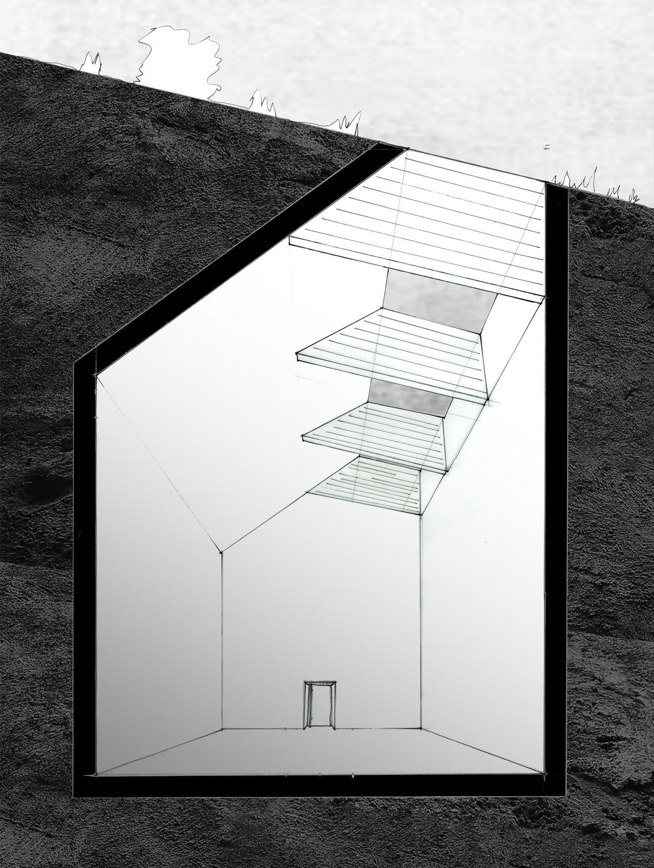 In het project Erweiterung zijn foto’s van Bernd en Hilla Becher van industriële objecten beschouwd en geïnterpreteerd. Een weerspiegeling van hun werkwijze. Erweiterung is een interpretatie van het vlak naar ruimte, wat vorm heeft gekregen in tal van verschillende ruimtes. Deze liggen verscholen onder de massa van de afvalberg, waarvan de buitenkant van de ruimtes ontbreekt en waarbij gefocust wordt op de atmosferische kwaliteit.