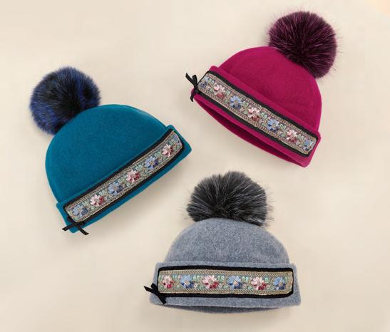 Red wool felt beret features a large complementary ribbon bow and crystal embellishment. Stretch band. One size fits most. R5T04-040 $129