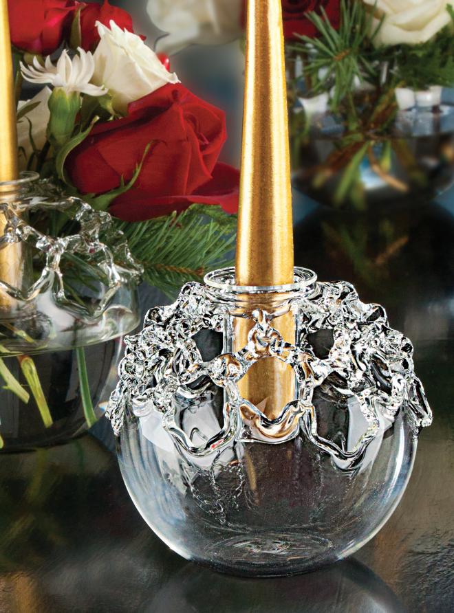 New Hand-blown glass accented in glittering fabrics and details. Approx. 7" tall. Includes signature gift packaging. Limited editions. $85/ea.