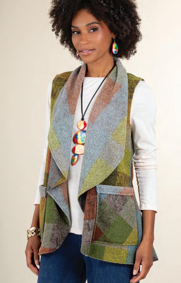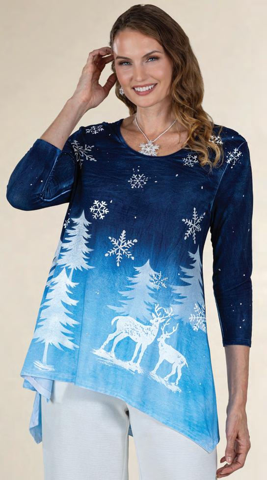 New Richly hued, abstract pattern. Scoop neck, 3/4-length sleeves, contrast pocket. Cotton micro modal mix. Pattern may vary. Available in S 6-8, M 10-12, L 14-16, XL 18-20, 1X 20-22, 2X 22-24, 3X 26-28. R5T52-010 $99