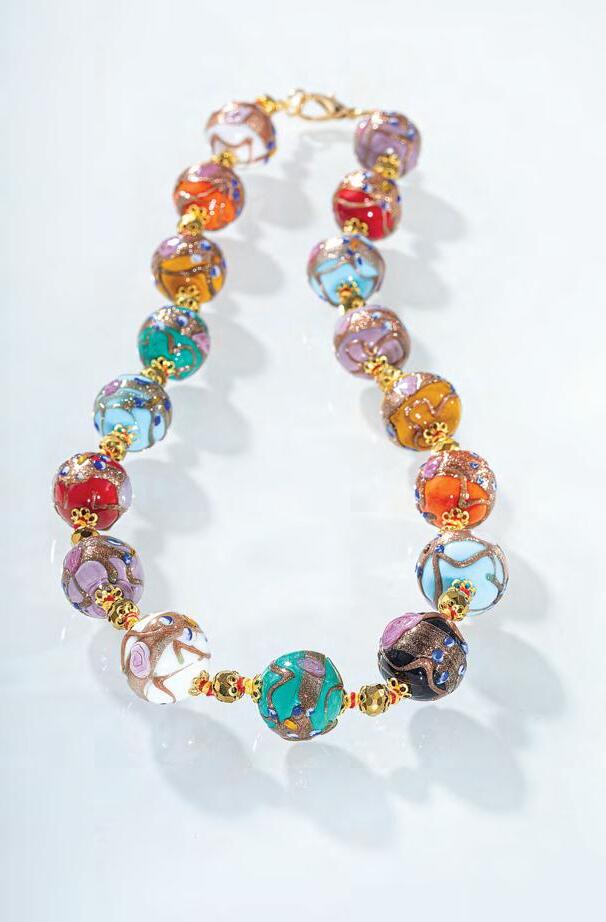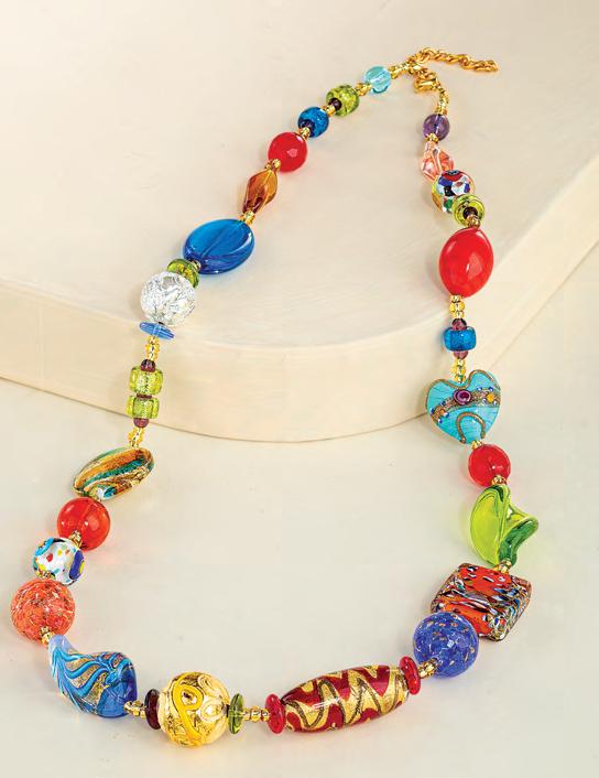 New Triple-strand brilliant red and gold foil-infused Murano glass beads mixed with golden seed beads. Approx. 20" long, 2" ext., 2" drop, lobster clasp. R5T04-060 $248