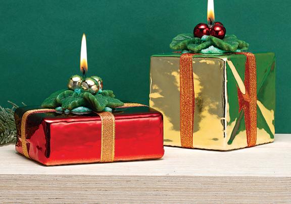 New Handcrafted with paraffin wax and a proprietary metallic finish. Each accented with ribbon and decorations.