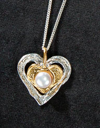 Textured pieces of stylish rose gold hearts and sterling silver.