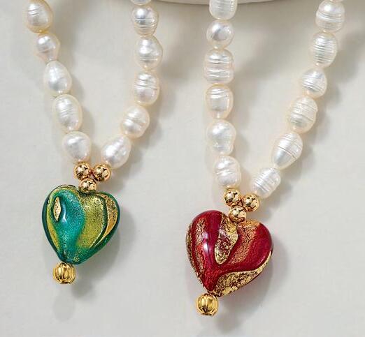 New Red and green faceted glass beads and white glass pearls made of Murano glass. Perfect for the holidays. Necklace, approx. 18" long, box clasp. R5T02-041 $168