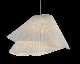 Arturo Alvarez’s Tempo Vivace Pendant is a masterpiece of craftsmanship. It reminds me of custom millinery with pointelle-like dotting and Issey Miyake–level pleats, yet it’s made with painted stainless-steel mesh. Its size and scale make it perfect for a variety of spaces, from grand foyers to intimate dining areas. The pendant’s unique design allows it to cast a dreamy diffused glow.