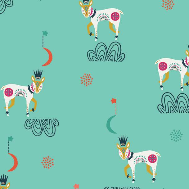Painted folk designs, patterns and colors bring Jessica's world to our delight. Fantastical elements with a modern touch in vivid tones reveal her style and allow us to dream about magical places of our own.