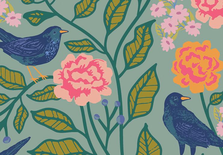 Venture into the enchanting world of Starling, a bold and vibrant collection that whisks you away to a realm of starry motifs, lush nature-inspired prints, and blackbirds soaring through speckled skies. DESIGNED BY MAUREEN CRACKNELL