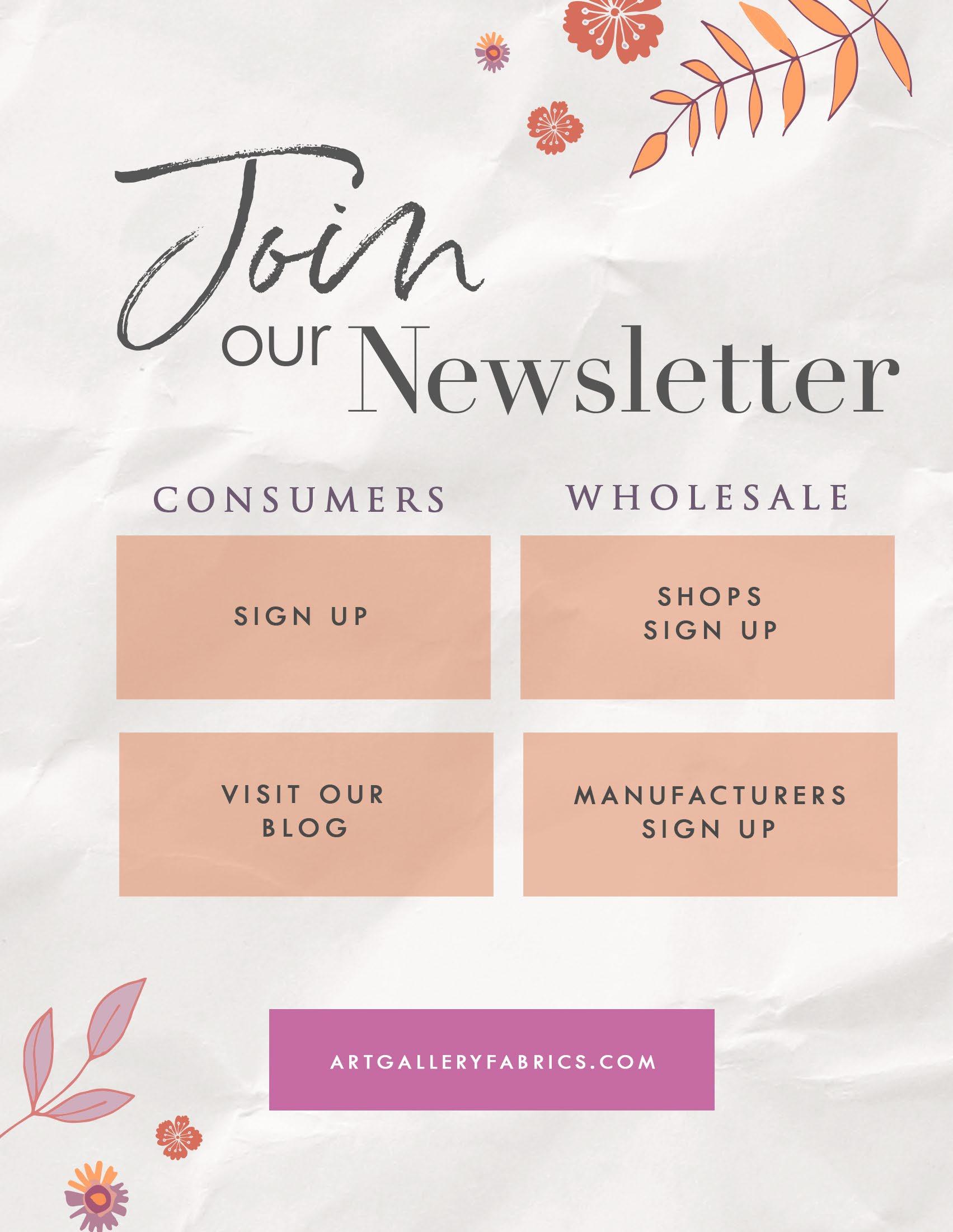 In 2004, our desire to bring a chic and modern perspective to the quilting industry is what inspired us to start Art Gallery Fabrics. Since then creativity, beauty, and design have been our passion. And to this day, they have not changed.