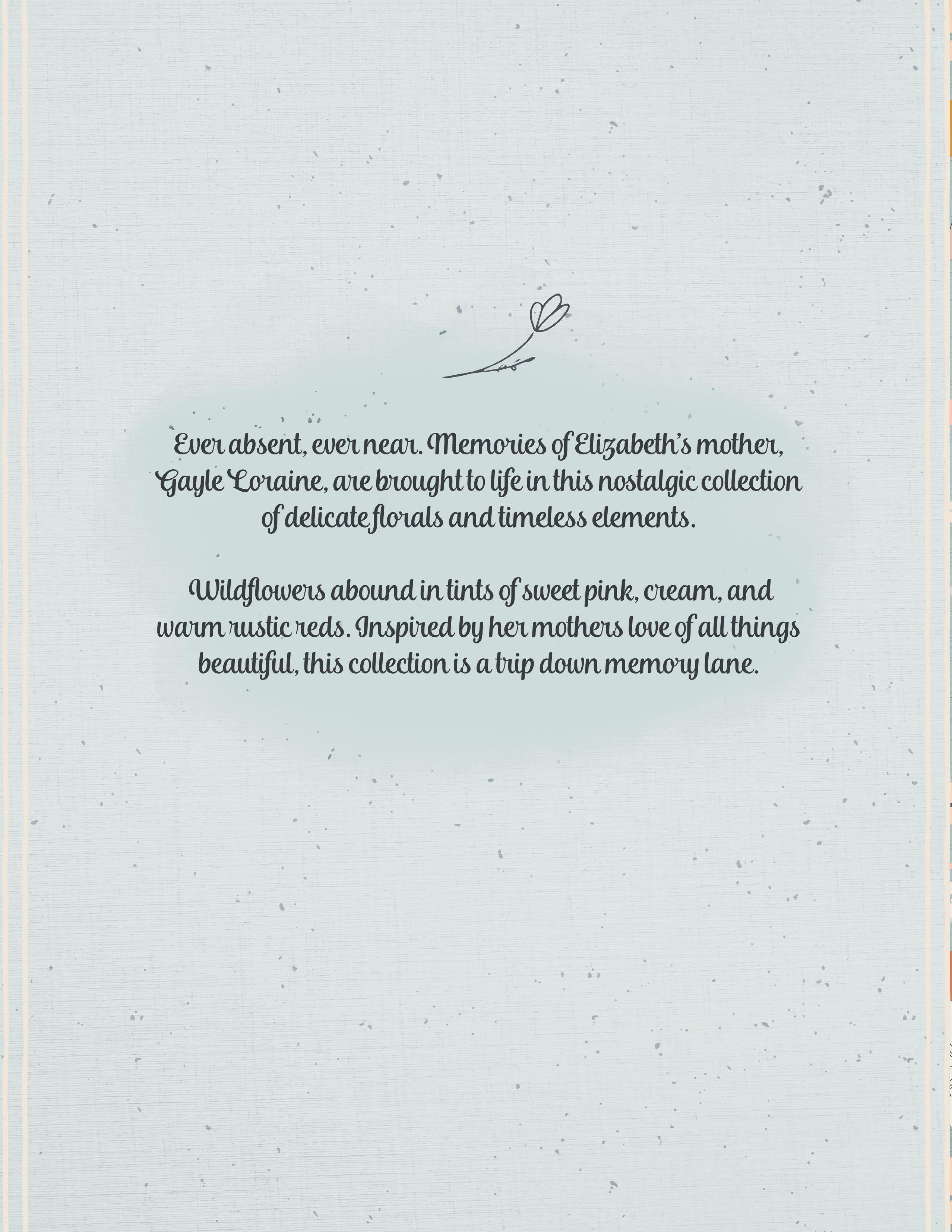 #AG FGayleLoraine 100% P RE M I UM C OTTO N | 44-45" W I D E | 125g GAL34900 MAGNOLIA DREAMS NIGHT GAL34904 MEMORY LANE GAL34901 EVERMORE BLISS GAL34905 CALICO BLOOMS GAL34902 SWEET NOSTALGIA GAL34906 LOOKING OUT GAL34908 MAGNOLIA DREAMS DAY GAL34910 ALWAYS TOGETHER GAL34909 GENTLE NOSTALGIA