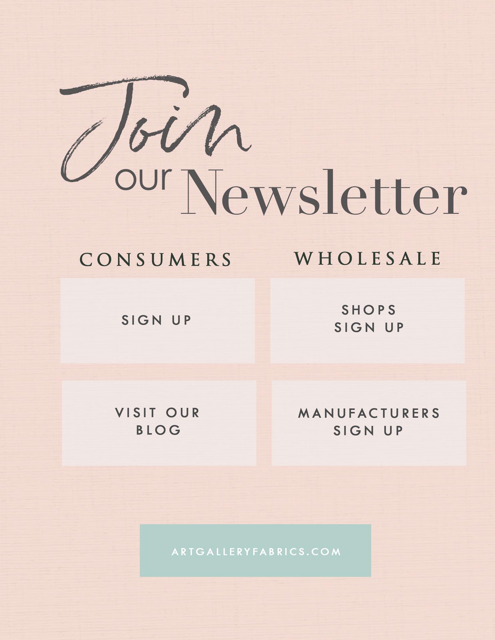 In 2004, our desire to bring a chic and modern perspective to the quilting industry is what inspired us to start Art Gallery Fabrics. Since then creativity, beauty, and design have been our passion. And to this day, they have not changed.
