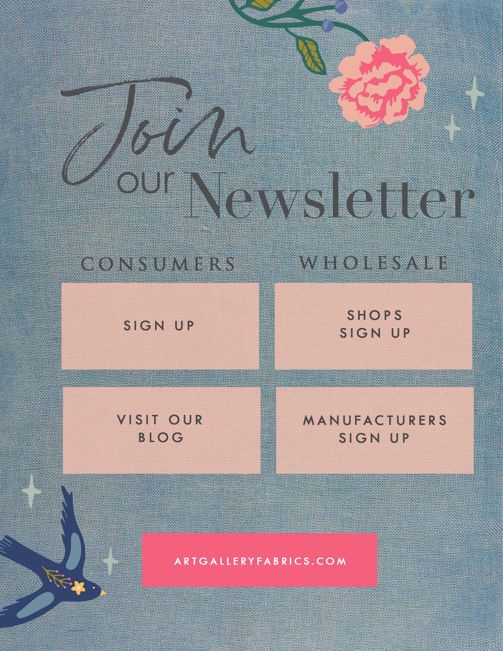 In 2004, our desire to bring a chic and modern perspective to the quilting industry is what inspired us to start Art Gallery Fabrics. Since then creativity, beauty, and design have been our passion. And to this day, they have not changed.