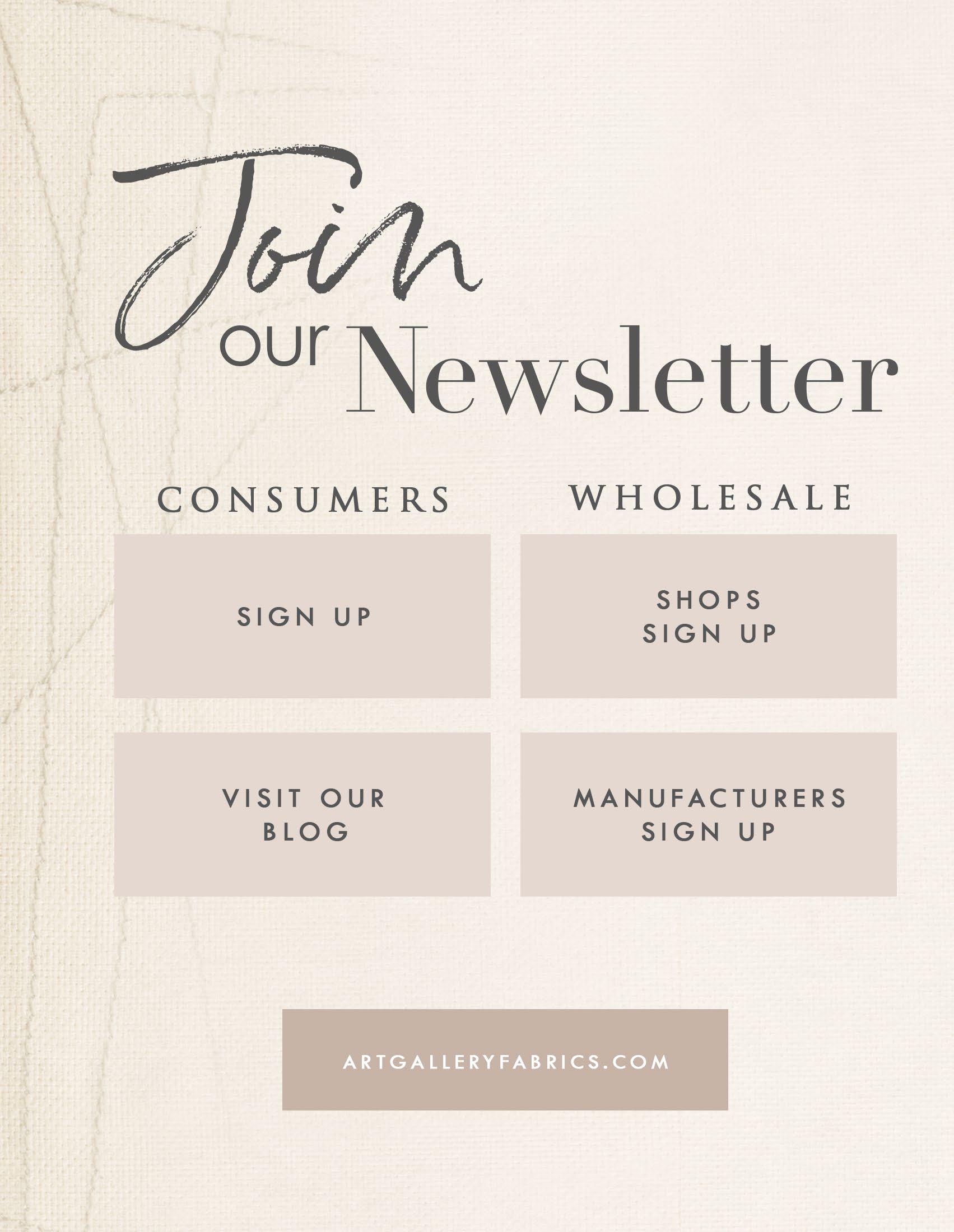 In 2004, our desire to bring a chic and modern perspective to the quilting industry is what inspired us to start Art Gallery Fabrics. Since then creativity, beauty, and design have been our passion. And to this day, they have not changed.